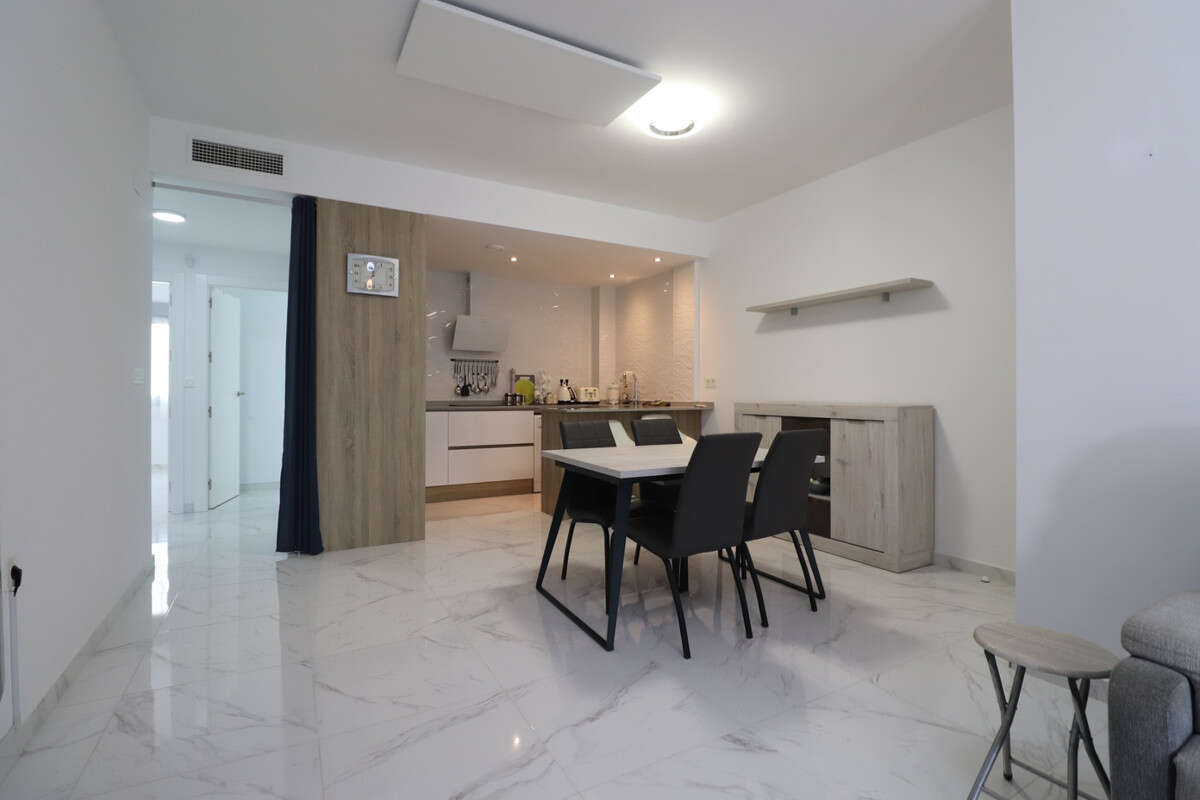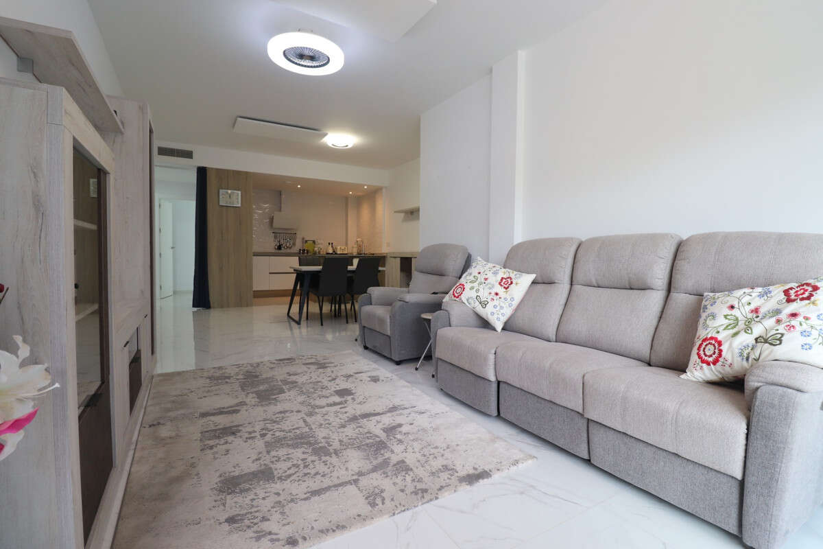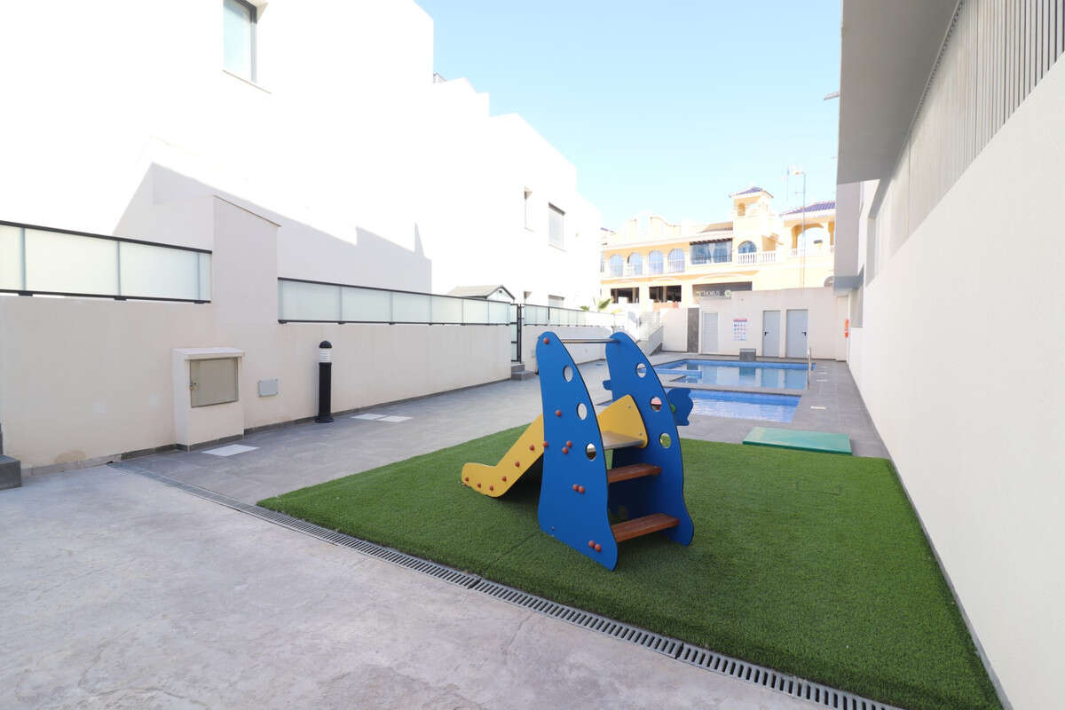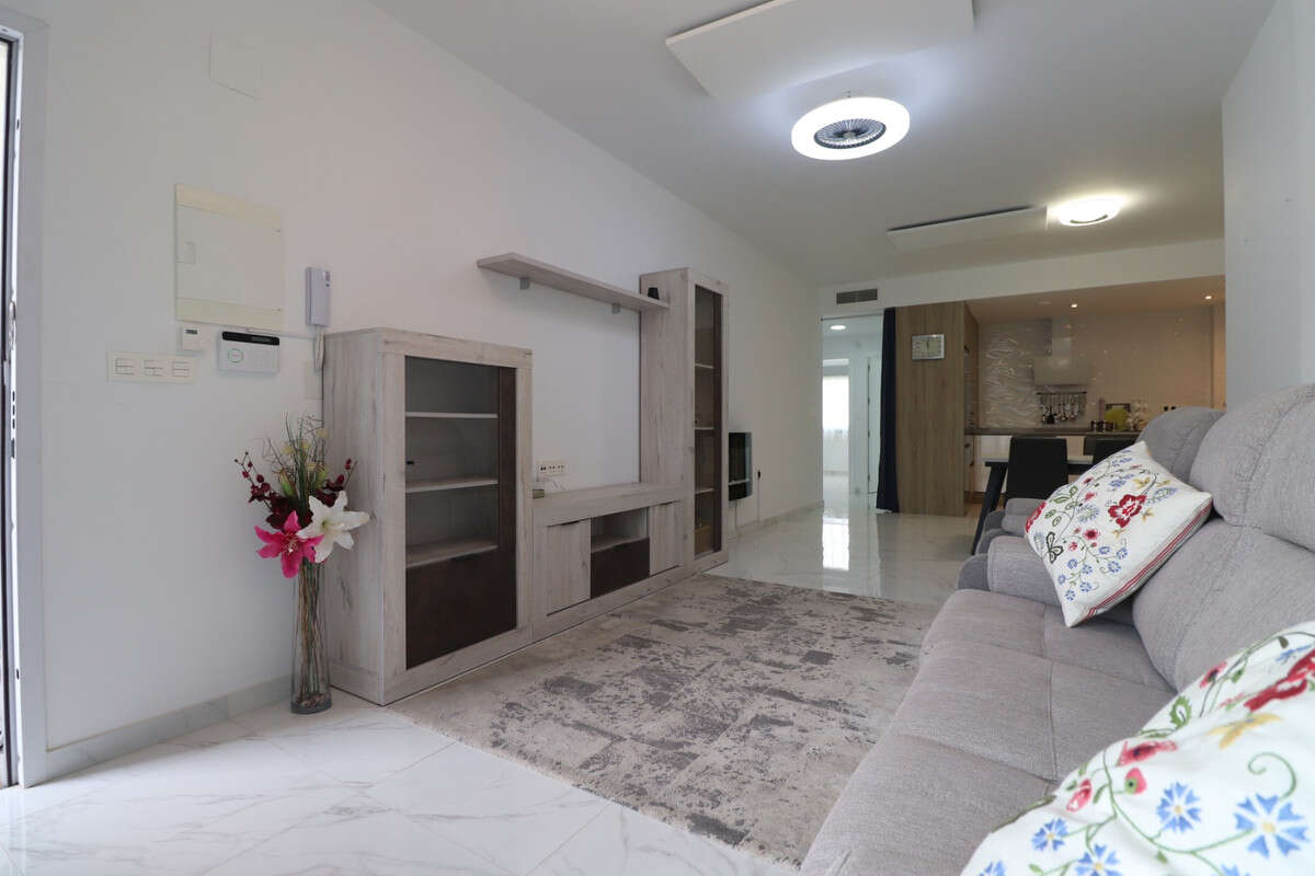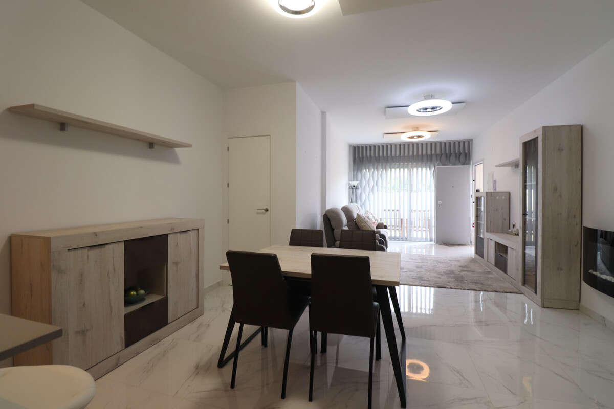 This East Facing, Three Bedroom, Ground Floor Apartment in benijofar, is located, within a 5 minute walk to the nearest shop, bars, restaurants and bakery, and only a 2 minute drive to a main brand supermarket. The beautiful beaches of the Costa Blanca South can be reached in approximately 15 minutes. The property offers a spacious 100m² build set on a 112m² plot, featuring an open plan kitchen leading through to the lounge, which is fitted with ducted air conditioning. From here, sliding doors open out to a private front terrace, ideal for relaxing or dining outdoors. There are three double bedrooms with fitted wardrobes, one of which benefits from its own terrace and en suite bathroom, while a family bathroom serves the rest of the property. Ducted air conditioning is installed throughout the bedrooms for added comfort. The complex benefits from a communal pool, and the property also includes basement parking and a private store room. A fantastic opportunity for either a holiday home or permanent living in the heart of Costa Blanca South.\n