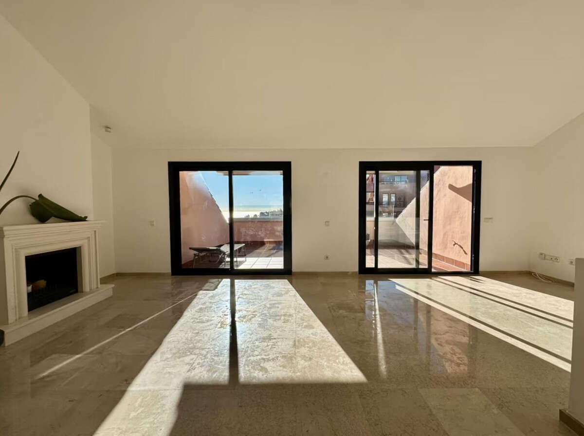 Fantastic 3-bedroom duplex penthouse with sea and African coast views, spread over two floors. It features two spacious terraces, air conditioning, heated floors, and access to communal gardens with two swimming pools. Garage and storage room included.