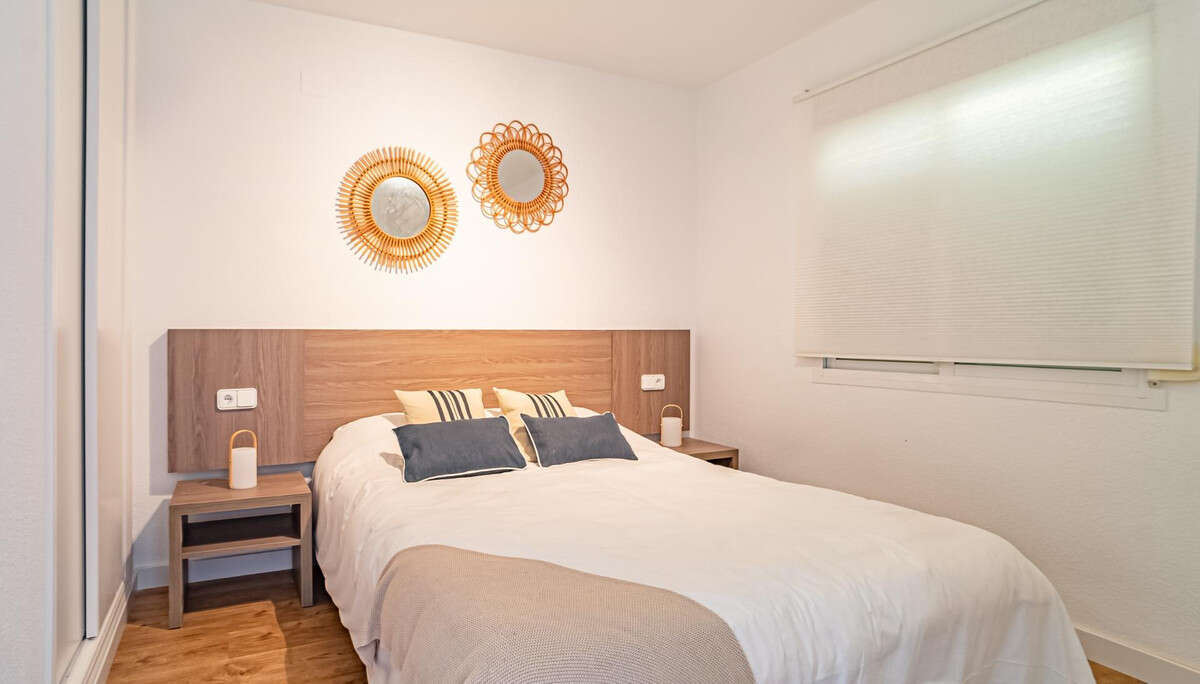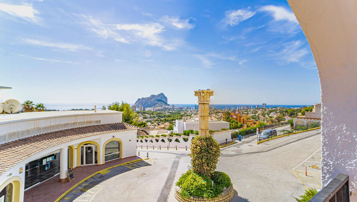 This apartment is part of a residential complex with 200 homes, located approximately 10 minutes from the center of Calpe and the sea. The apartment features a spacious bedroom, a full bathroom, a semi-open kitchen, and a living/dining room. From the living room, you can access a large terrace with stunning views of the sea and the Peñón (rock), and from this terrace, you can go up to a 23 m² solarium.
