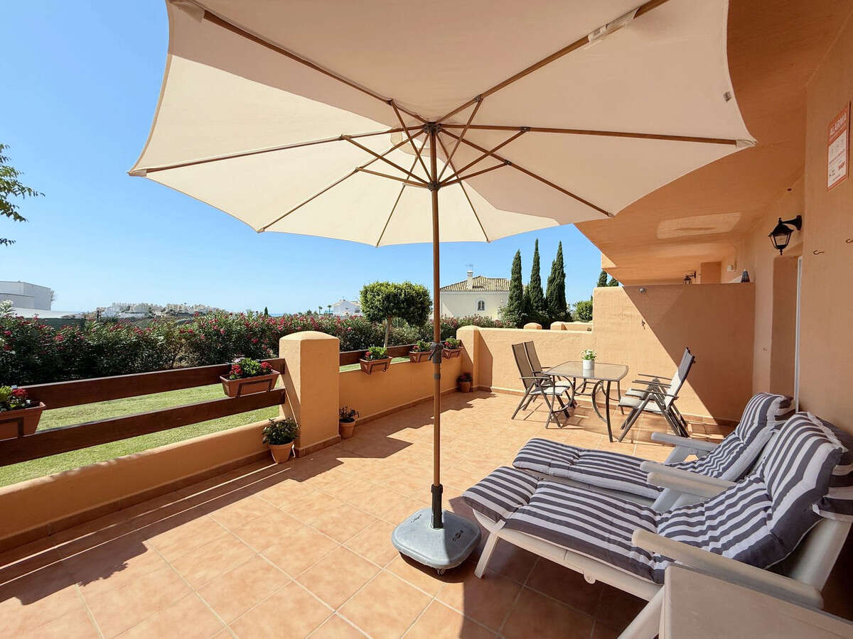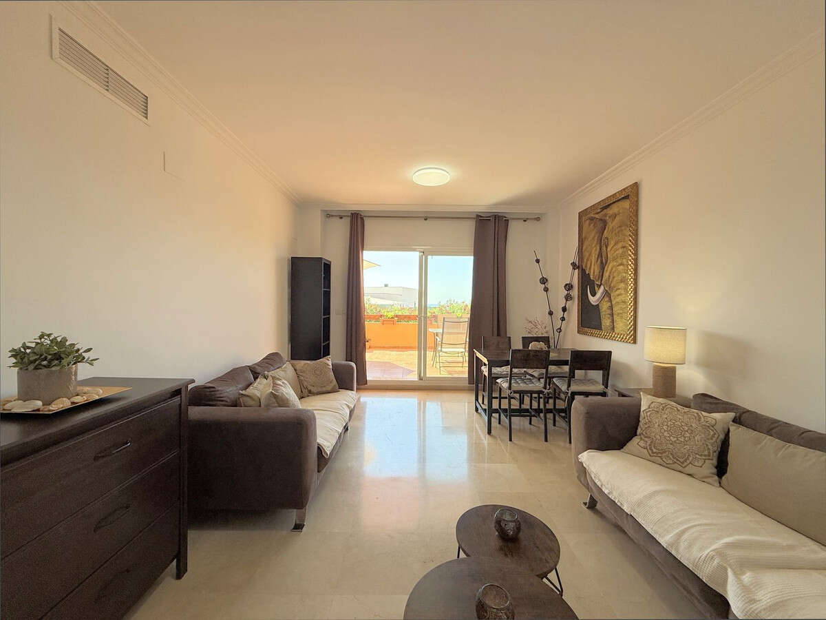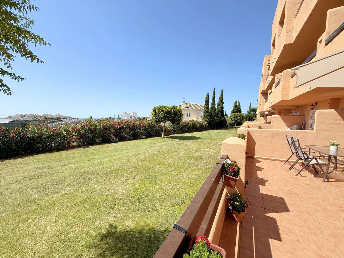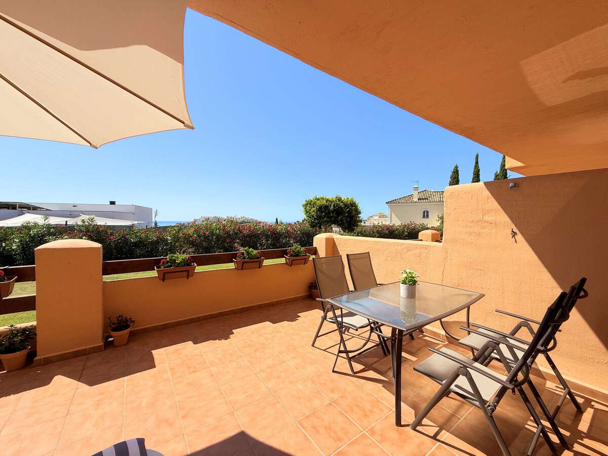 Located in Casares Costa, a growing area surrounded by nature, prestigious golf courses such as Finca Cortesin and Doña Julia, and exclusive residential developments, this cozy ground floor apartment stands out for its spacious extended terrace with partial sea views and a peaceful, private setting—ideal for enjoying the Mediterranean climate all year round. Just 4 minutes by car from the marinas of La Duquesa and Estepona, and close to the upcoming Hilton hotel, its location offers excellent access to sandy beaches, a charming promenade, restaurants, beach bars, and leisure areas. The property is in perfect condition and ready to move into, with a functional single-level layout that includes 2 spacious bedrooms, 2 bathrooms, a bright living room with direct access to the large private terrace, and an upgraded kitchen with a newly built utility room providing extra space and comfort. With southwest orientation, the apartment enjoys natural light throughout the day and a warm, relaxing atmosphere. Set within a gated community with pedestrian access to the beach in approximately 12 minutes, lush tropical gardens, 6 swimming pools (one open year-round), concierge service 12 hours a day, hot and cold air conditioning, underground parking space, and a storage room. Additionally, it has a valid tourist license, making it a perfect investment for personal use or for holiday and long-term rentals. A unique opportunity that truly deserves a visit!