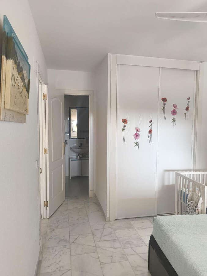 The apartment consists of three spacious bedrooms, perfect for accommodating a family or guests, as well as two functional bathrooms, one of which is en-suite to the master bedroom. The main living area allows for a combined living and dining space with direct access to a 30 m² terrace, providing a pleasant outdoor extension where you can enjoy the mild Costa del Sol climate.