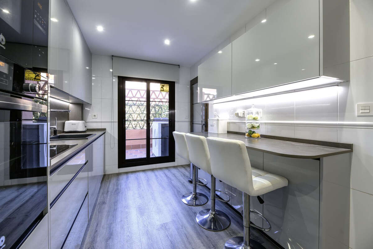 One of the standout features is the layout. Upon entering, there is a guest toilet, which is not commonly found in this urbanisation. The fully renovated kitchen found to your right as you enter is modern and well-equipped, with access to a large rear terrace and separate utility area.