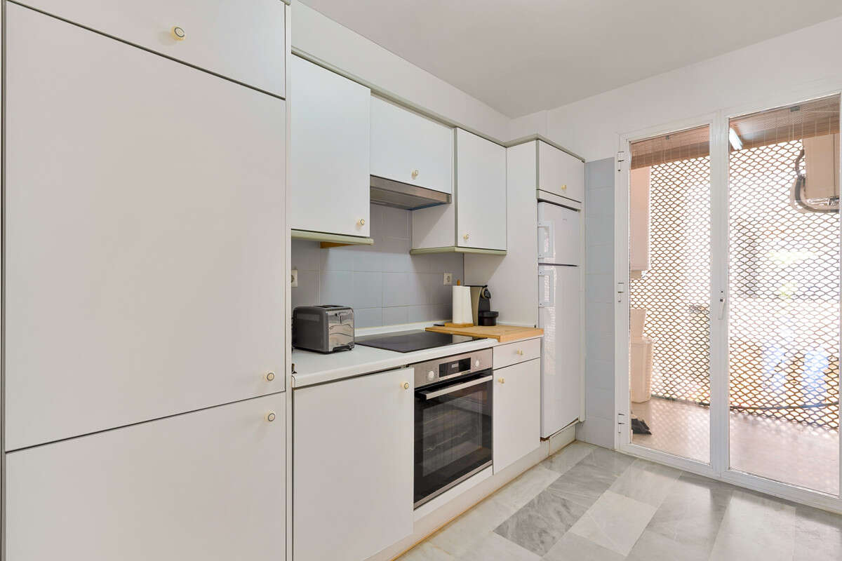 Spacious three-bedroom ground floor apartment situated in the sought-after community of Las Jacarandas, Bel Air, within a gated complex featuring beautifully landscaped gardens, two communal swimming pools, and concierge service. Ideally located close to the beach and a wide range of leisure amenities, including golf courses. This property offers an open-plan living and dining area with direct access to a private terrace and garden; a fully fitted kitchen with an enclosed utility room; two guest bedrooms with access to a private terrace; a guest bathroom; and a master bedroom with en-suite and access to the private garden. Additional features include hot and cold air conditioning, marble flooring, fitted wardrobes and a private parking space.