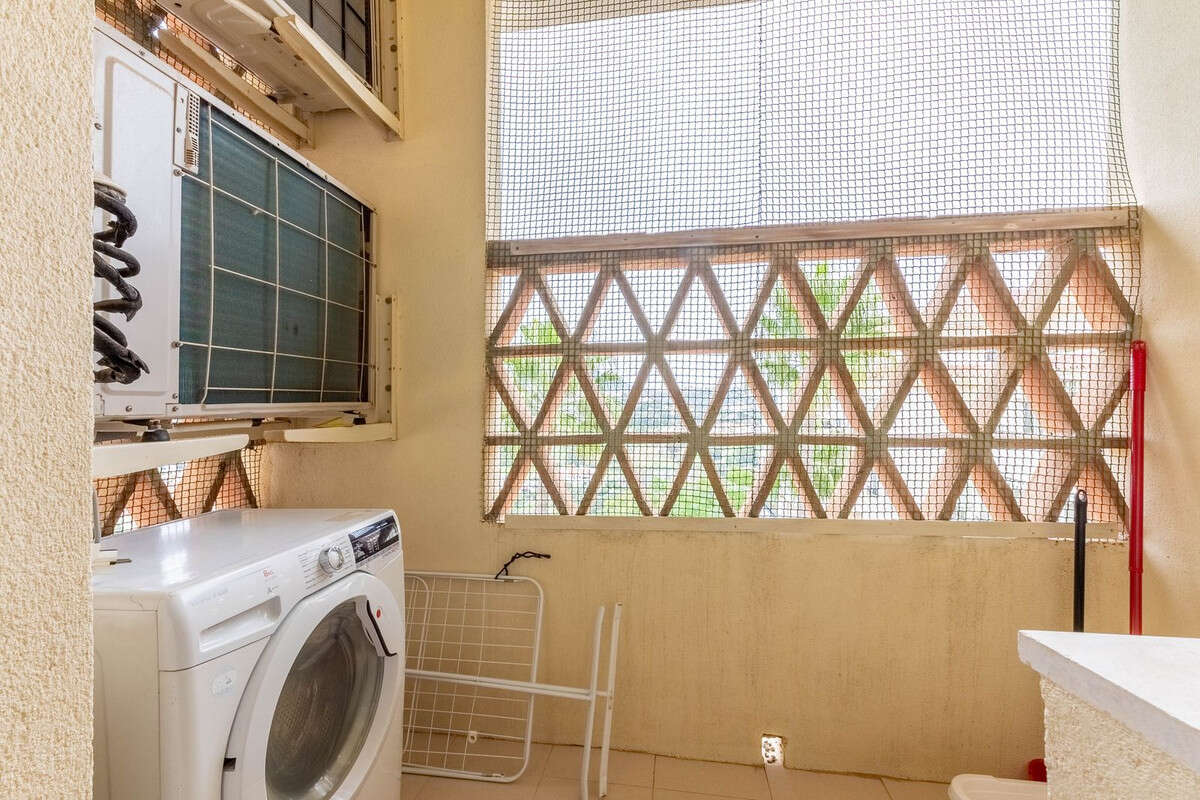 The apartment is presented in excellent condition and has been freshly painted throughout. The master bedroom features an upgraded en-suite bathroom with a walk-in shower and double vanity, along with direct access to the terrace. The two additional bedrooms are both well-proportioned, each with double beds, bedside tables, ample storage, and attractive views. The second bathroom has also been upgraded and includes a walk-in shower and modern vanity units.