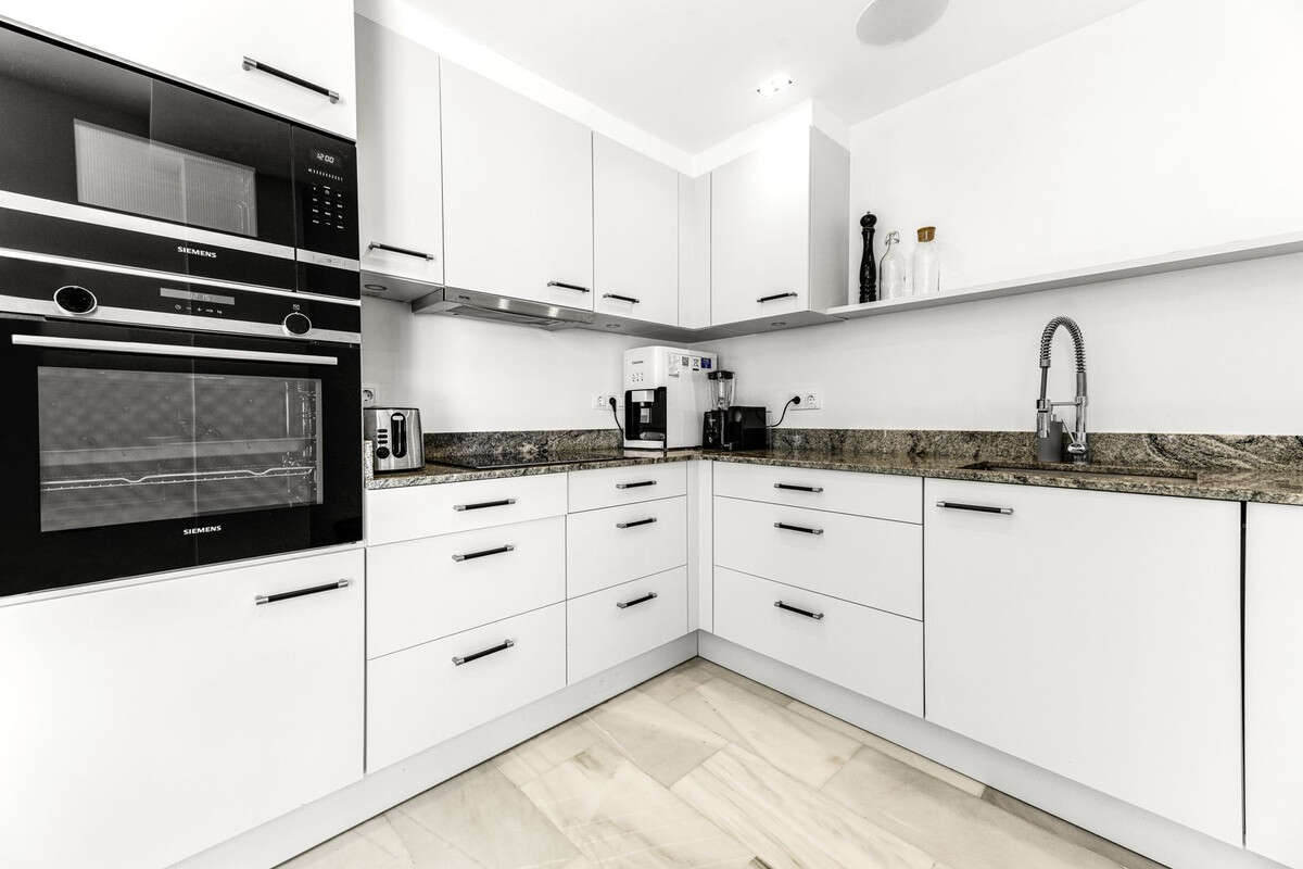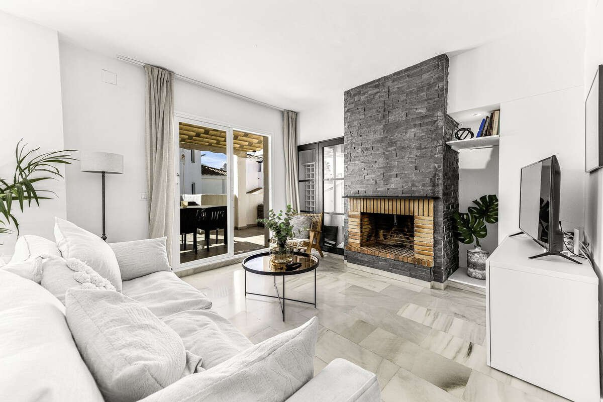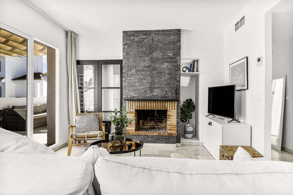 This elegant duplex penthouse in Nueva Andalucia offers three bedrooms and two bathrooms, combining modern comfort with a prime location. The spacious lower terrace is ideal for relaxing or entertaining, while the rooftop solarium with its outdoor kitchen creates the perfect setting for al fresco living under the Mediterranean sun.