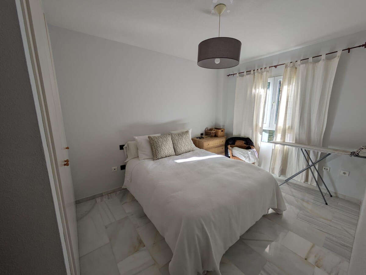 This charming first-floor apartment is located in one of the quietest and most sought-after areas of Torrequebrada, just 500 meters from the beach, allowing you to enjoy the Mediterranean coast in just a few minutes. The property features a spacious and bright living-dining room that connects to an additional room, ideal for use as an office or study. From the living room, you have access to a cozy balcony overlooking the complex's gardens and a small glimpse of the sea, where you can relax while enjoying a coffee. The balcony also offers internal views of the complex, providing an atmosphere of peace and privacy. The open-plan kitchen, newly installed in 2025, is fully equipped and offers a functional and practical space. The home also has two bathrooms, one with a bathtub, and two additional bedrooms, both with built-in wardrobes, offering ample storage space. The apartment includes a garage and storage room for added convenience. The complex also has a swimming pool, perfect for enjoying the good weather. The location is excellent, with all amenities nearby: a school, supermarkets, and a bus stop within walking distance, making everyday life easier. This home is ideal for those looking for a bright, quiet home with sea views and all the amenities, just a stone's throw from the beach and local amenities. If you'd like more information or to arrange a viewing, please don't hesitate to contact us.