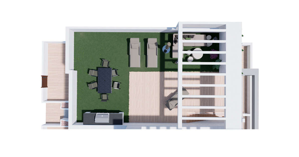 The luxury bungalows have 2 bedrooms and 2 bathrooms from 131 m2. In a development with 3 swimming pool areas, jacuzzi area, fitness area, paddle tennis court, children's area, mini golf and green areas.