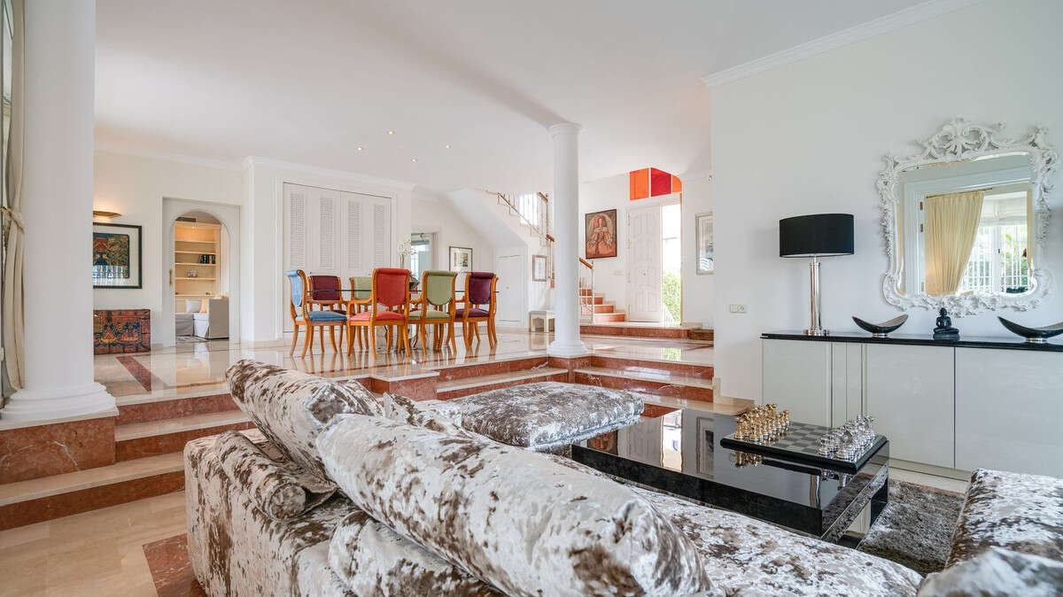 This villa in Elviria has a heated pool is perfect for those who love space, comfort and privacy. You also get security, views and proximity to beaches and amenities in one of Marbella's most prestigious areas. You will definitely love this villa in Elviria because of the exquisite, one of a kind decor and all of the features/art, large saltwater heated pool and panoramic sea view. Complete with maid service 3 hours once a week.