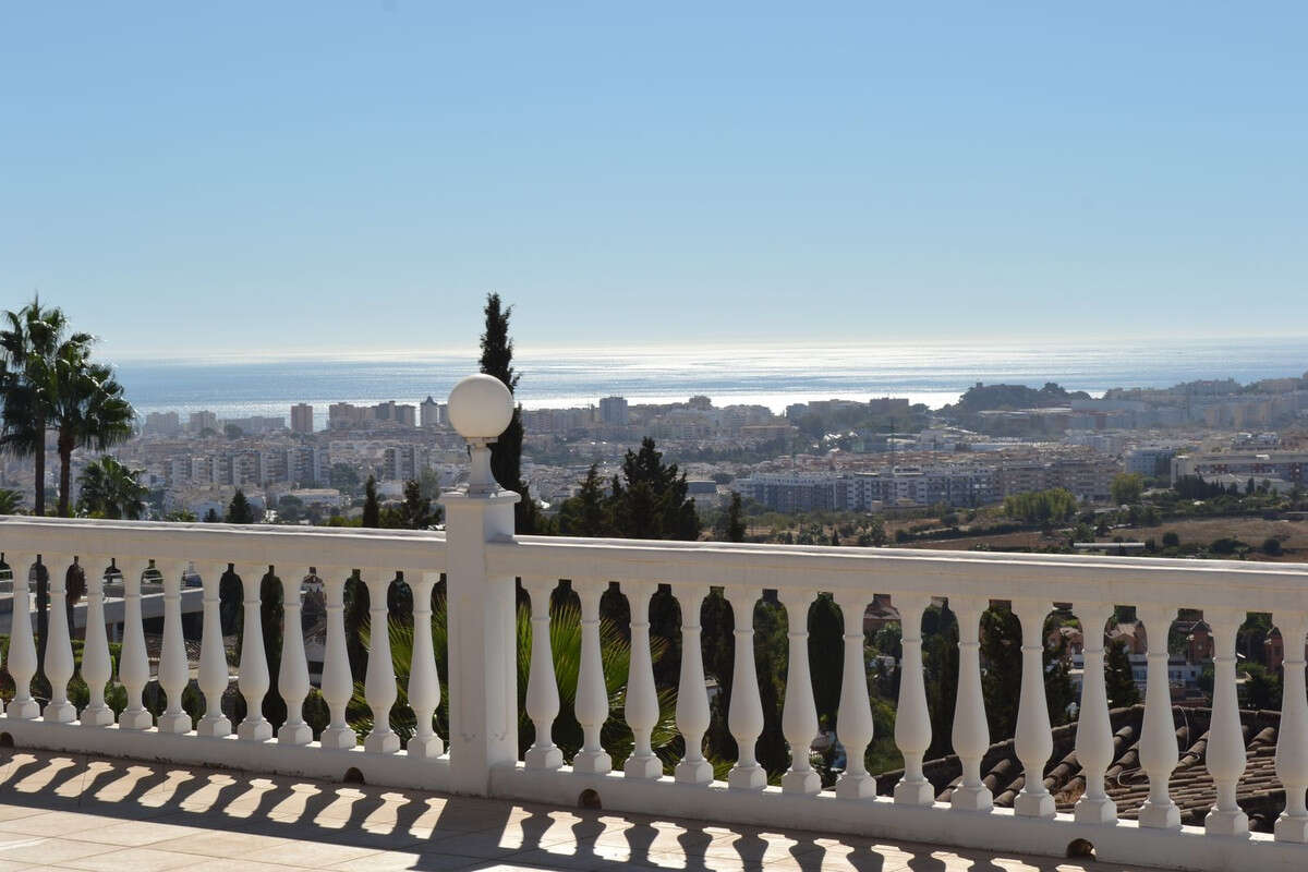 Villa with Unique panoramic views of the Mediterranean Sea, city, golf courses and mountains located at the top of La Sierrezuela. The villa is on one level and is located on a large plot of 1260m2. Large double garage, plus plenty of parking space inside the gate. Lovely living/dining room with access to the large partially covered terrace. Nice kitchen in connection with the living room and 3 spacious bedrooms each with its own bathroom + a guest toilet in the entrance hall. Large swimming pool with views of the Mijas mountain. Must experience!