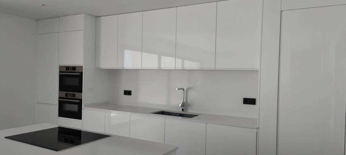 A bioclimatic design means that excellent high quality materials have been used, but at the same time with the aim of reducing consumption and thus protecting the environment. SALONI 90x90 ceramic floor tiles. Certified natural OAK wood parquet. TECHNAL aluminium carpentry, with thermal bridge break, double glazing with solar control, air chamber for cold/heat insulation and security glass. Lime paints, with smooth, opaque and water vapour permeable material, free of VOC (volatile organic compounds). Installation of SCHNEIDER electrical network and mechanisms. Double-flow mechanical ventilation system with enthalpic recuperator and aerothermal support with ambient temperature and humidity control. Bathroom cladding with MORTEX micro-mortar. Natural, ecological and breathable gypsum and cellulose fibre panels. GEBERIT bathroom fittings, TRES taps, home automation for lighting control and KNX blinds.