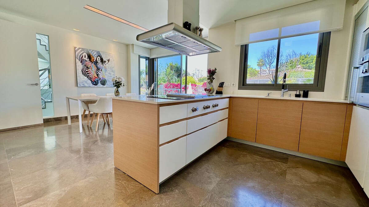 Modern Villa with high quality interior designer in Nagueles Golden Mile. This is a new 4 bedroom villa built to the highest standards of quality in the area of Nagueles. 4 double bedrooms, 3 bathrooms. 5 terraces including panoramic roof terrace with a shower and sunbeds. Free Wifi internet throughout the house. Fully air-conditioned and underfloor. heating Samsung sound system and Smart TV with 300+ international channels. Private 13.5m pool, heated, with sunbeds. Gaggenau dining-kitchen with American fridge, Teppanyaki grill and Espresso machine.