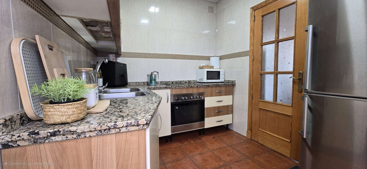 The house has three spacious bedrooms and a full bathroom, distributed over a built area of 65 m². The living room is bright and comfortable, with individual air conditioning units and direct access to a 30 m² private terrace, ideal for enjoying the Costa del Sol climate. In addition, it has a spectacular 65 m² private solarium terrace with urban views and the possibility of building up to three additional floors, which adds great potential for expansion.