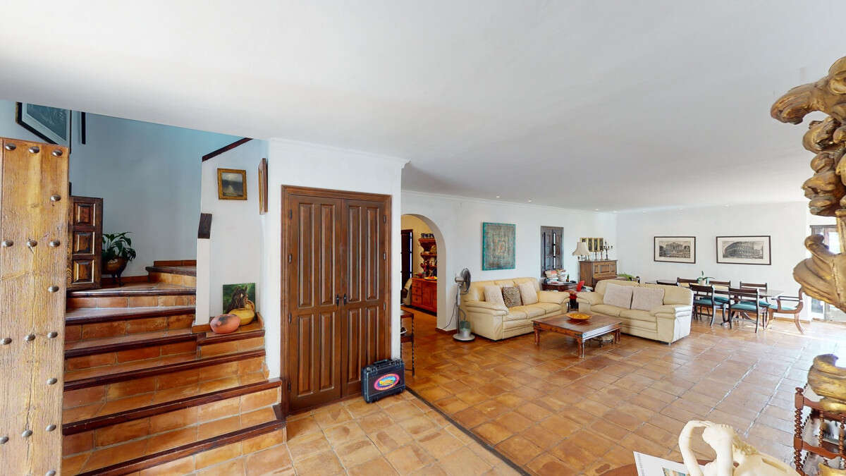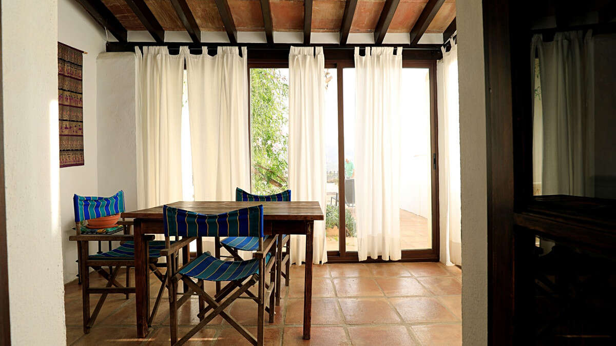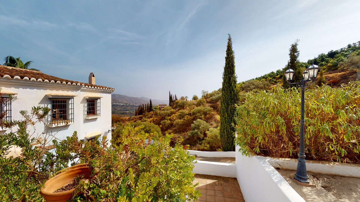 Are you looking for an oasis in harmony with nature? A place of peace and relaxation, where time runs a little slower? Yes?! Then we would like to show you this fantastic villa, in the mountains of Torrox. It offers an imposing, grand main house, a separate, small guest house and a pool, as well as 5,569 m2 of land, which is predominantly flat and thus offers countless possibilities. The layout of the property makes it possible to use the main house as two independent living units, with separate entrances. This fabulous property is perfect as a multi-family home, B&B or as an investment opportunity for a yoga center, event location, dance school or meditation temple.... An almost completely paved driveway leads you to a concrete parking area, which is partially covered. On this level is the charming guest cottage with its own covered terrace. It is equipped with a cozy, open living/dining area with a bed, a kitchen and a bathroom. The fireplace provides comfortable warmth in the cooler months. A driveway, as well as stairs, lead to the lower level. Another heavy wooden door with an iron horse door knocker grants entry into the spacious, imposing living area with fireplace, of the first part of the house. To the right is a guest toilet. Next to this is a room which is currently used as an office/library. It can also be heated to a comfortable temperature in the cooler seasons with the fireplace. We have adjacent a small, glazed room from which you can enjoy the view of the surrounding countryside. The large terrace at the front of the house offers breathtaking views of the famous white village of Frigiliana and the Sierra de Tejada in the background. Thanks to the hillside location, the hollow space under this terrace can still be closed and create more living space, if needed. From the living room, also with access to the terrace, one enters the spacious open kitchen with dining area. The interplay of traditional and modern has been perfectly achieved here. A glass patio door leads to the beautiful u-shaped and typical Andalusian courtyard with a fountain. On the second floor of the house there are three bedrooms and two bathrooms. The master bedroom has a large, modern bathroom with its own sauna, as well as a bathtub and shower. From two of the bedrooms there is access to an enchanted u-shaped balcony with views down into the Andalusian courtyard. Its wooden beams and plantings make it feel like you've stepped into another era. A corridor leads from this balcony to the second part of the house. On the second floor there is a bedroom with another fireplace, called the Sunroom because of its wall color. A staircase leads down to a huge open space with a large flat skylight that lets in natural light. The space can be used for a wide variety of possibilities. As a dance studio, atelier, or conference room. A feel-good temperature can also be created here with a great fireplace. On this level we also have a large heavy wooden door, the separate entrance to this part of the house. Right next to the entrance area there is a fully equipped bathroom. Through an open arch you enter a living area with a small, charming kitchen. Through almost floor-to-ceiling windows, you look out onto an idyllic pond and out into the countryside. There is another bathroom and two bedrooms, both with access to the outdoor area. The outdoor area includes a pool, many terraces with seating, a small vegetable garden and some olive trees. The bodega, or wine cellar, adds the finishing touches to the mansion and guarantees the right temperature for your wine. We are pleased to be able to present this dream property to you soon, either personally or via virtual viewing. Because this world, it is unique - just like our Axarquía. In Andalusia. On the Costa del Sol. Here, on the sunny side of life...