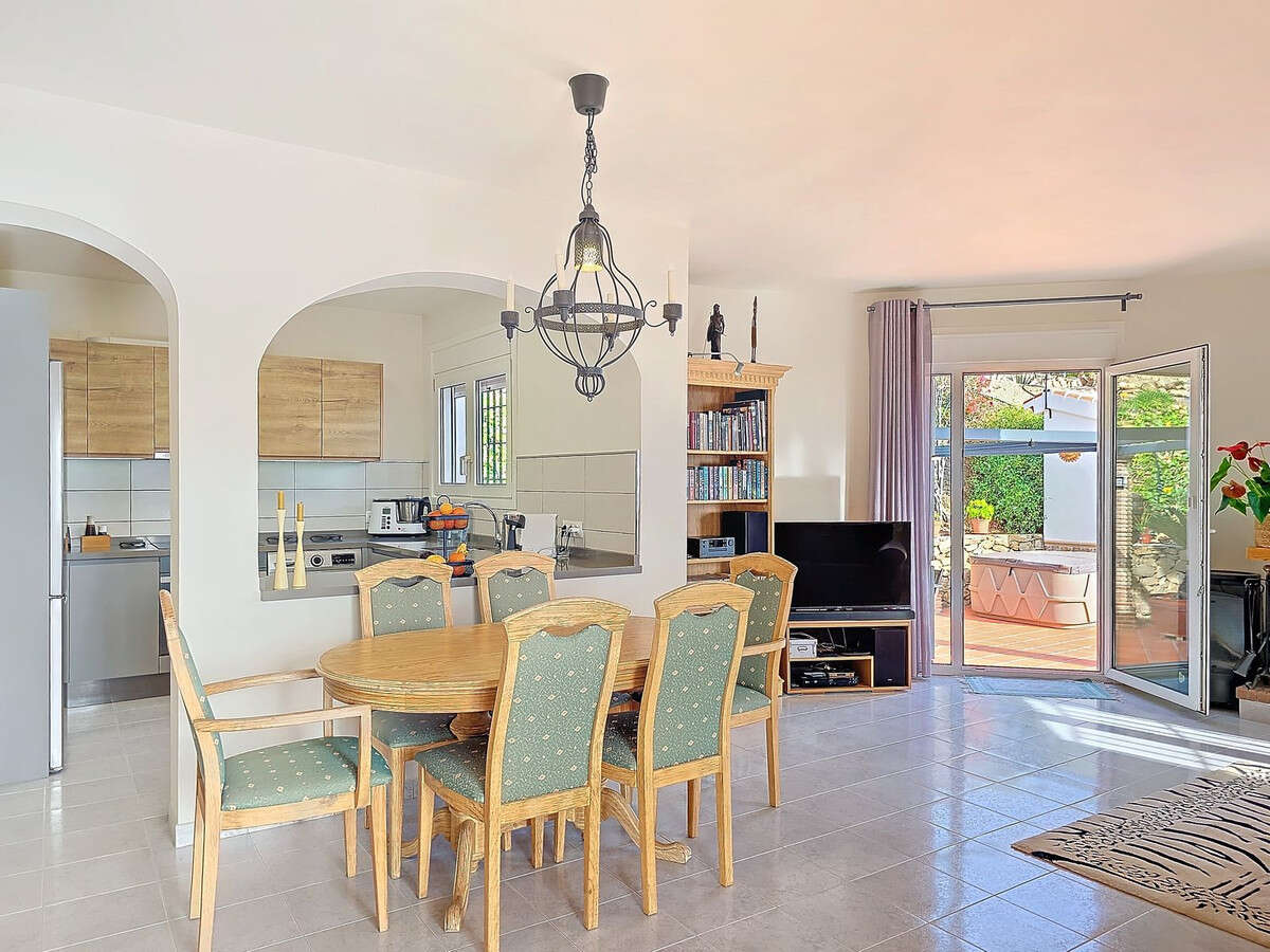 The villa has four spacious bedrooms and three bathrooms, one of which with its own bathroom can be closed off separately, ideal for guests or extra privacy. In addition, there is an independent annex with its own bedroom, bathroom and kitchen, perfect for guests or rental. The living room exudes atmosphere and cosiness, partly thanks to the fireplace that provides extra warmth on cooler evenings. The kitchen was completely renovated a year ago and is equipped with all modern conveniences.