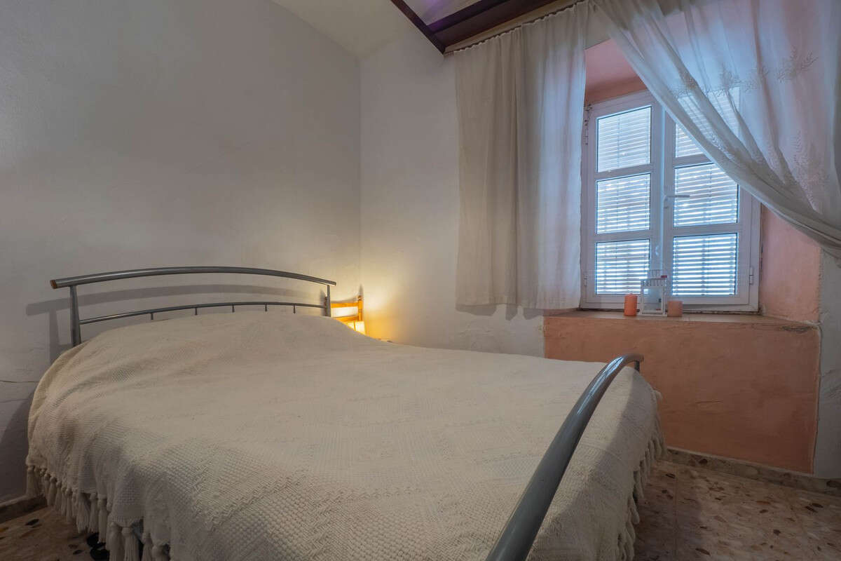 Outdoor living is a standout feature. From the dining area, you access a private terrace with an outdoor bathroom, a large cave, and an upper storage room. Stairs lead to a vast open roof terrace boasting pleasant views over the village rooftops and distant mountains.