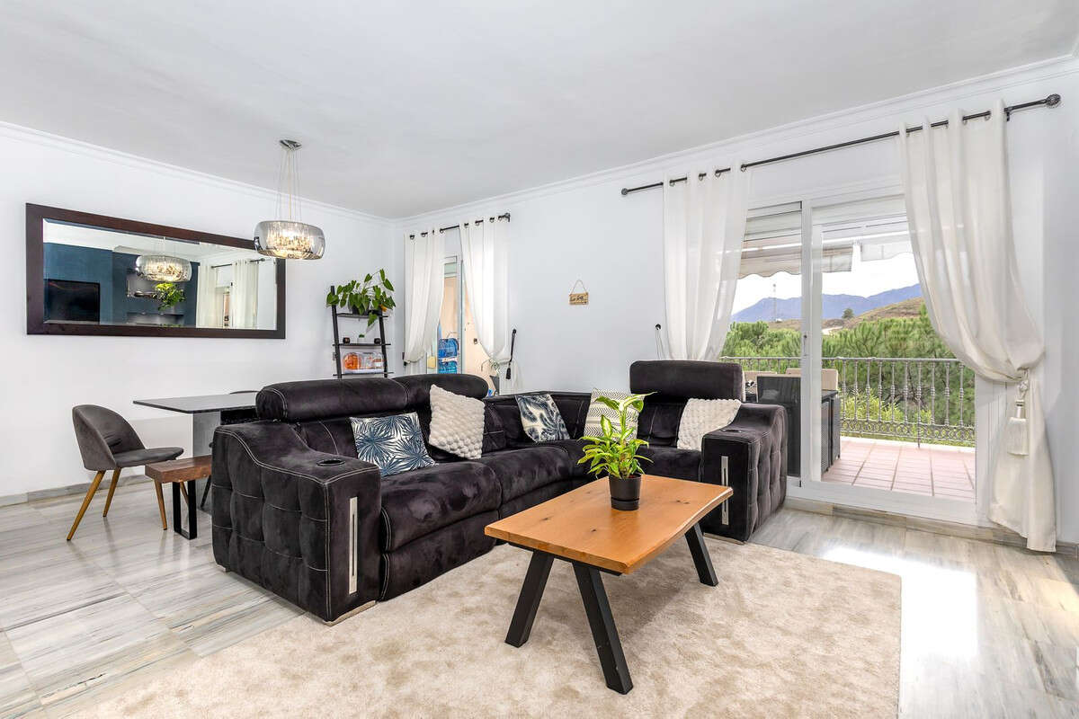 This move in ready property comprises of a large, open plan kitchen-living-dining floor leading to a bright and warm, covered, dining and lounge terrace with south to southwest facing views overlooking the mountain range of Alhaurín Golf, Barranco Blanco and beyond.