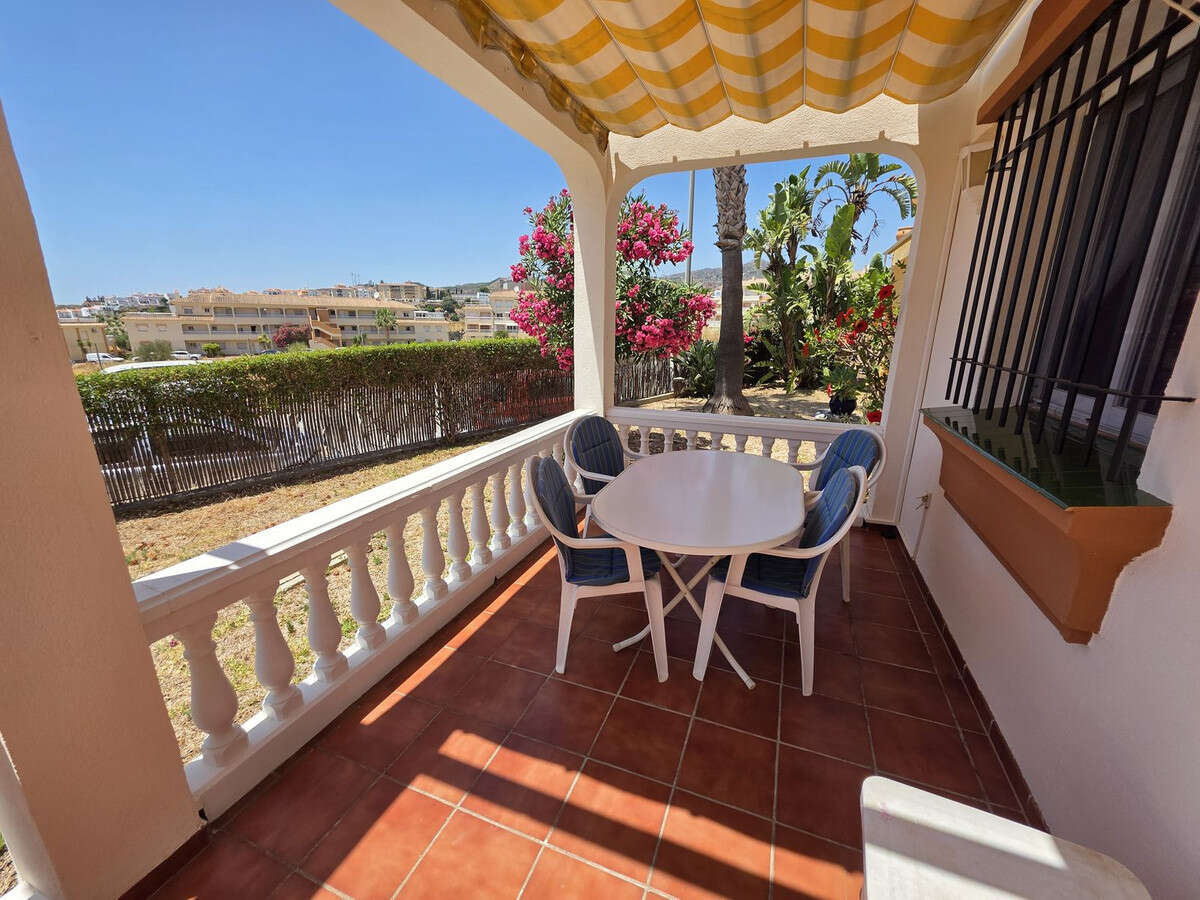 Great location of this townhouse in Torrox Costa, close to the beach and to all amenities. Also a public school is just a few minutes away. The townhouse offers a patio at the entrance, a large terrace at the back and a large roof top terrace with spectacular sea views along the coast. Overall you find two bedrooms, one full bathroom, an open kitchen with all electric appliances, a dining area and a large living room with access to the private terrace and communal garden. Facing south west with views along the coast! This townhouse is part of a community in Torrox Park which offers gardens all around and a large swimming pool area. About 30 minutes from the Málaga airport and city and only 10 minutes to the famous village of Nerja. The m2 are as followed, 70m2 living area, 16m2 terrace, 55m2 roof top terrace and 4m2 staircase!