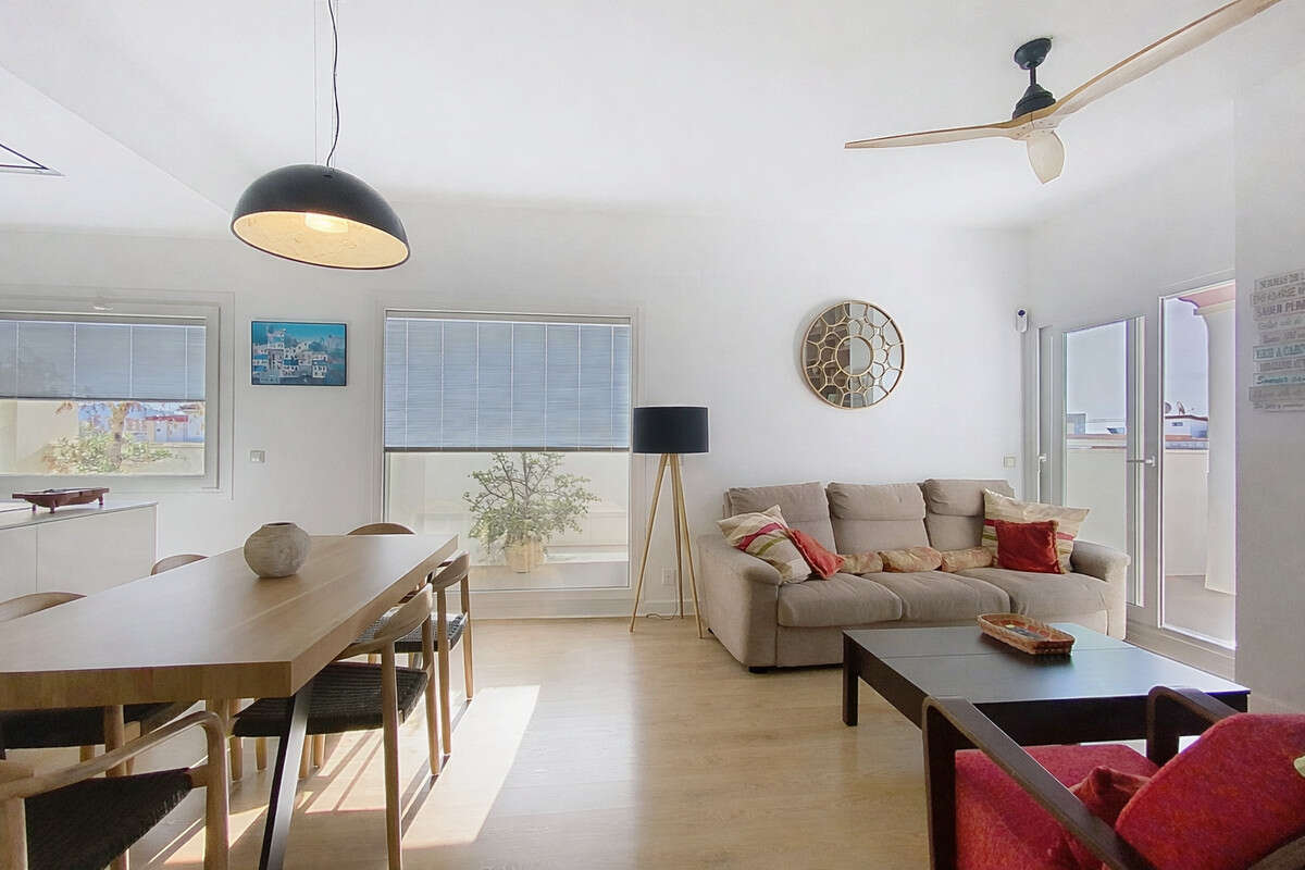 From the very first moment, the elegant entrance hall sets the refined character of the home. The fluid and bright layout of the apartment is enhanced by an open-plan living room perfectly integrated with a dining area and a spacious kitchen with a central island and open views, maximizing space and natural light. The true highlight of this penthouse is its spectacular terrace conceived as a private oasis with direct access from the living room. Here the infinite views, a cozy chill-out area, are the perfect setting to enjoy the Mediterranean climate all year round.
