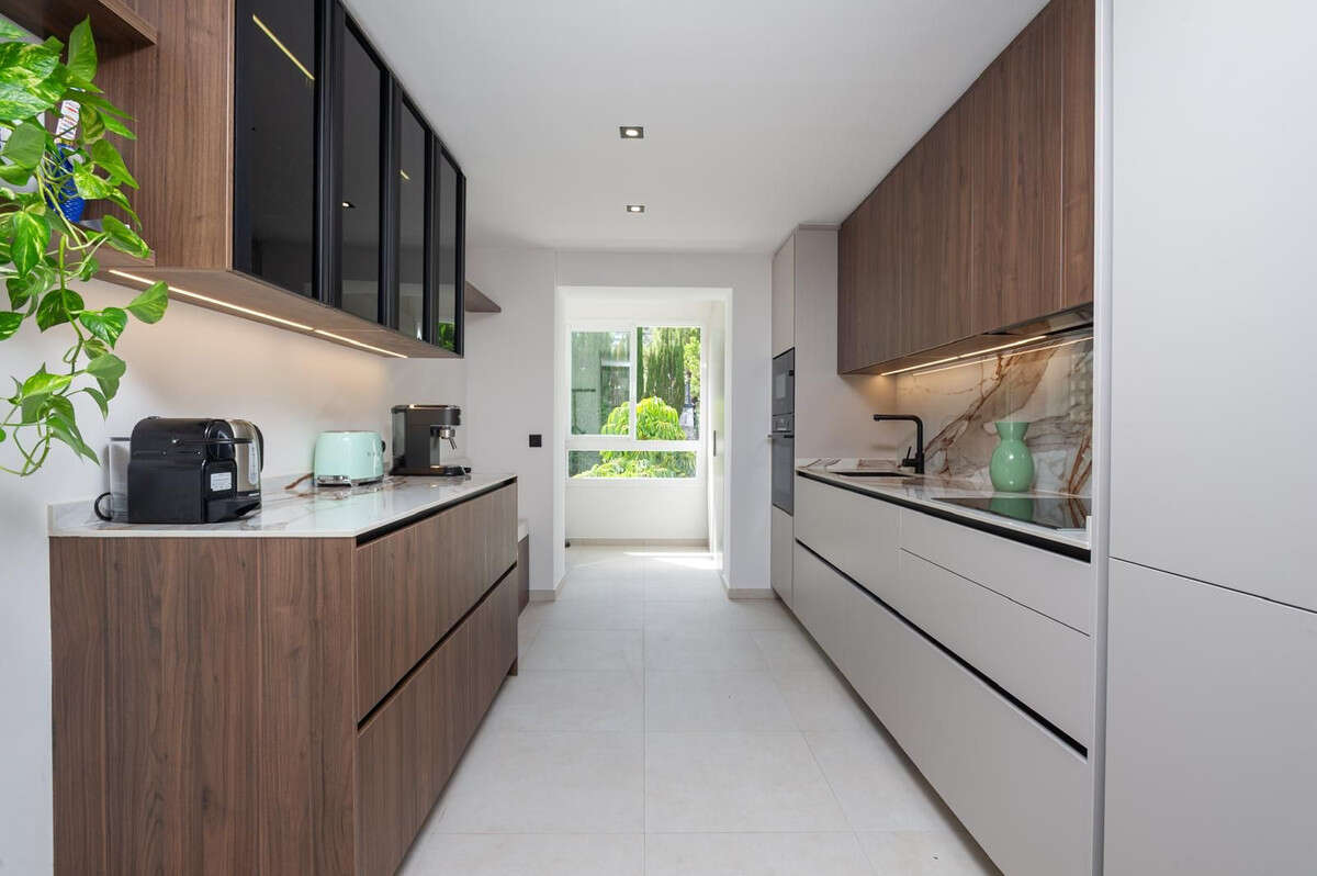 This beautifully refurbished duplex penthouse has been decorated with exquisite taste. Upon entering, you are welcomed by a spacious and luminous living room that opens onto a terrace ideal for al fresco dining or relaxing with a drink looking to green areas. The modern kitchen is cleverly integrated to make the most of the natural light. Along the corridor, you will find two elegant ensuite bedrooms.
