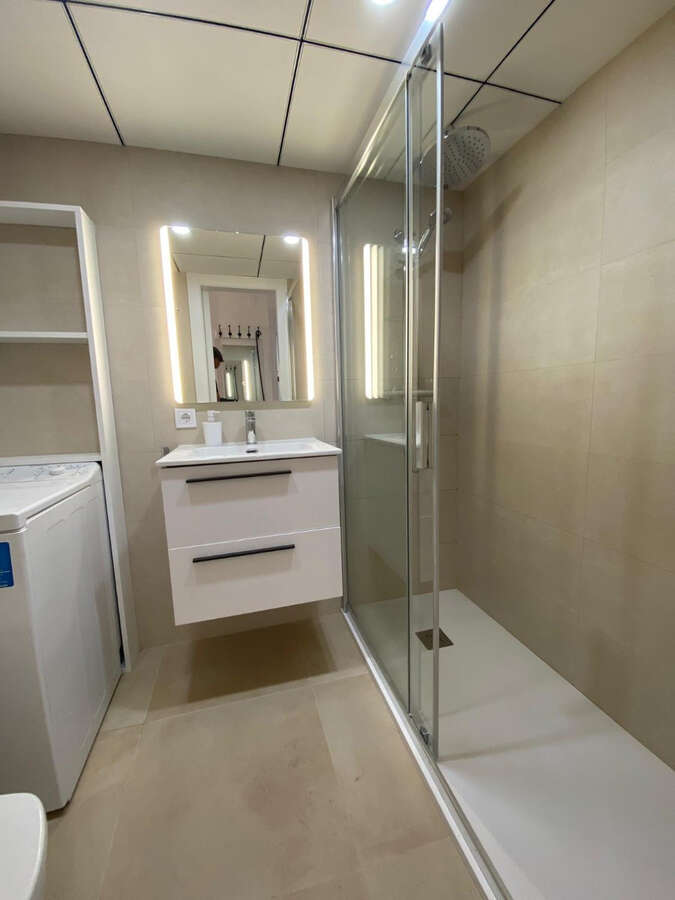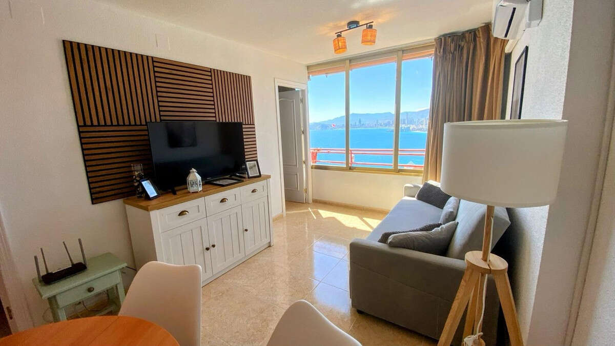 Apartment for rent for months in Benidorm, Rincón de Loix Cruz area, 60m2, 250m2 from the beach, 2 double bedrooms, bathroom, equipped kitchen, wooden interior carpentry, south facing, ceramic floor, aluminum exterior carpentry.