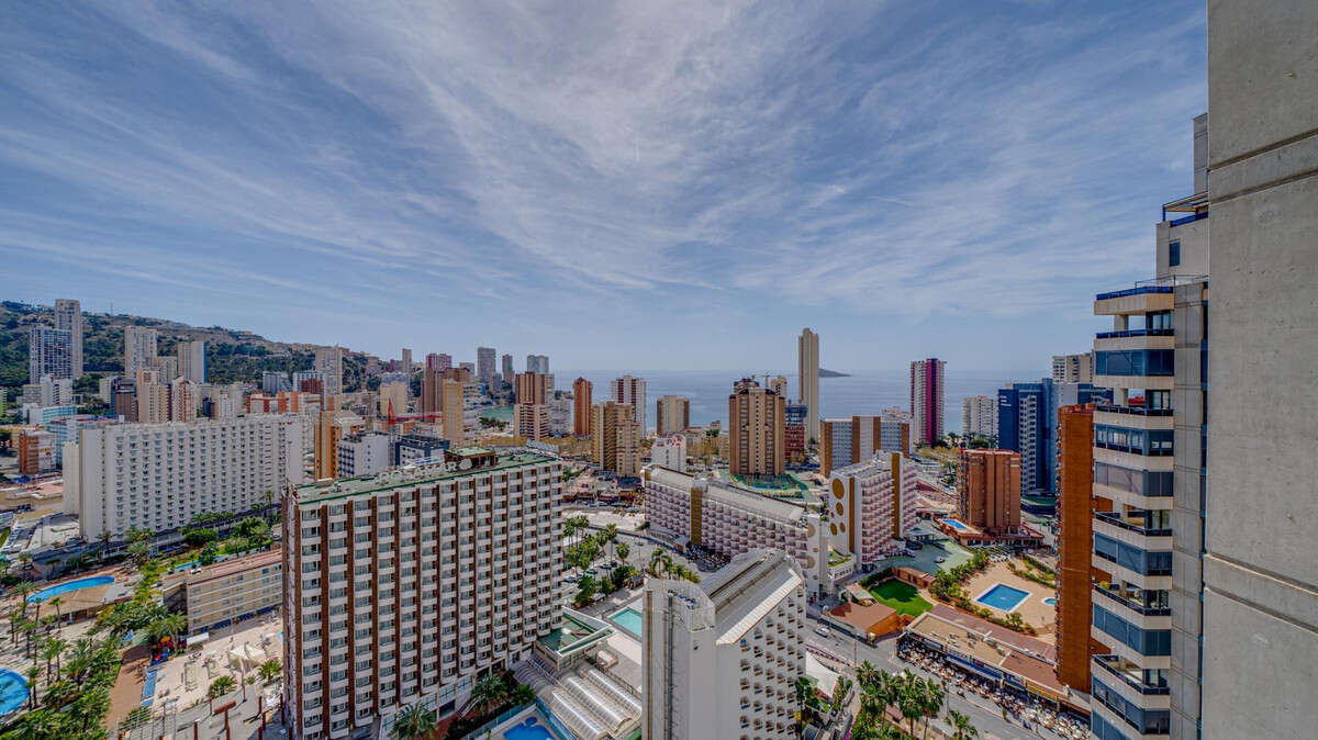 Bright apartment with amazing sea viewsThe apartment is located on the 22nd floor in one of the best areas of Benidorm, just 550 meters from Levante beach. It is a very bright property in perfect condition, ready to move into or to use as a tourist rental.The apartment has one bedroom, which makes it perfect for couples or singles looking for a comfortable and cozy place in Benidorm. It also has a lounge with a terrace, from where you can enjoy panoramic views of the city and the Mediterranean Sea.The kitchen is fully equipped with everything you need to prepare everyday meals and has a pantry to store food and kitchen utensils. In addition, the apartment has a full bathroom with a bathtub.The urbanization in which the apartment is located has a beautiful pool and a well-kept garden, which makes it an ideal place to relax and enjoy the Mediterranean climate. In addition, the property is very well located and close to all kinds of services, such as restaurants, shops, supermarkets, pharmacies and public transport.In summary, this apartment is an excellent option for those looking for a comfortable property, in perfect condition and in a privileged location in Benidorm.
