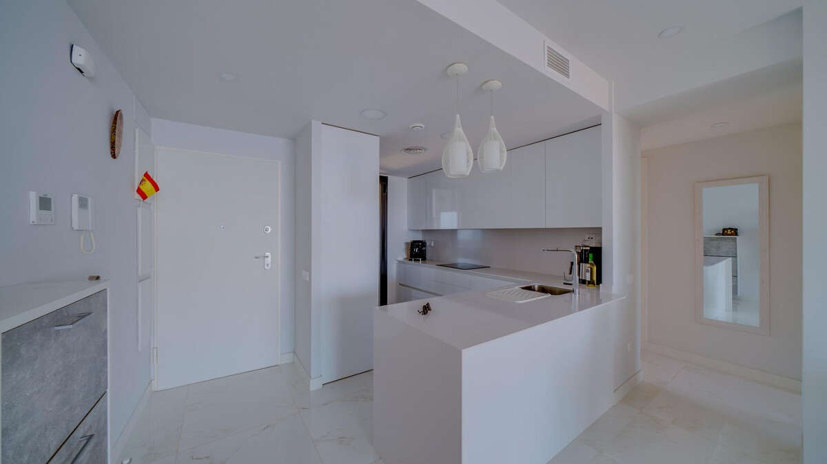Discover this wonderful apartment WITH tourist license in Poniente Beach Benidorm, which boasts a spacious built area of 130 m² and a charming private terrace of 16 m². The semi-new property consists of two large double bedrooms and two modern bathrooms, providing an ideal space for families or couples. Equipped with a full kitchen, elegant marble floors, and white lacquered interior carpentry, the property stands out for its brightness thanks to its east-facing orientation.Among its amenities, notable features include: accessible PMR (people with reduced mobility) access, central air conditioning (hot/cold), generous built-in wardrobes to maximize storage, and an elevator accessible from all floors of the building. The balcony offers unobstructed views of community gardens where you can enjoy unique moments with your family.The urbanization includes various facilities such as a fully equipped gym and immaculate green areas adorned with lush trees; it also features both a heated pool and an outdoor pool, perfect for relaxing year-round, as well as safe play areas ideal for the little ones. A sauna is also available.Strategically located near essential services such as regular buses, various shopping centers including supermarkets, and nearby hospitals ensuring overall well-being. Undoubtedly, this is an excellent opportunity if you are looking to combine modern comfort with Mediterranean quality of life! Don't miss this unique opportunity.