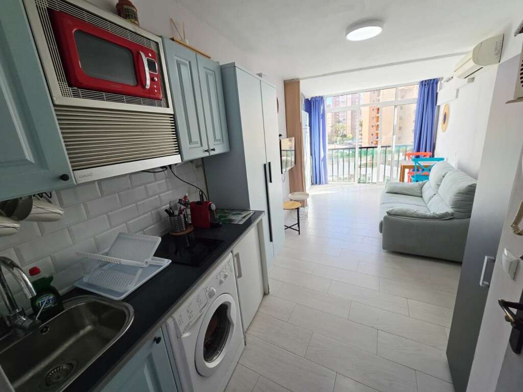 Sus 22 m² están muy bien aprovechados. Distribución diáfana, almacenaje integrado, armario y mueble para despensa que ayudan a mantener todo en su sitio. Cocina equipada, baño con ducha y una temperatura agradable durante todo el año gracias al sistema de aire acondicionado.