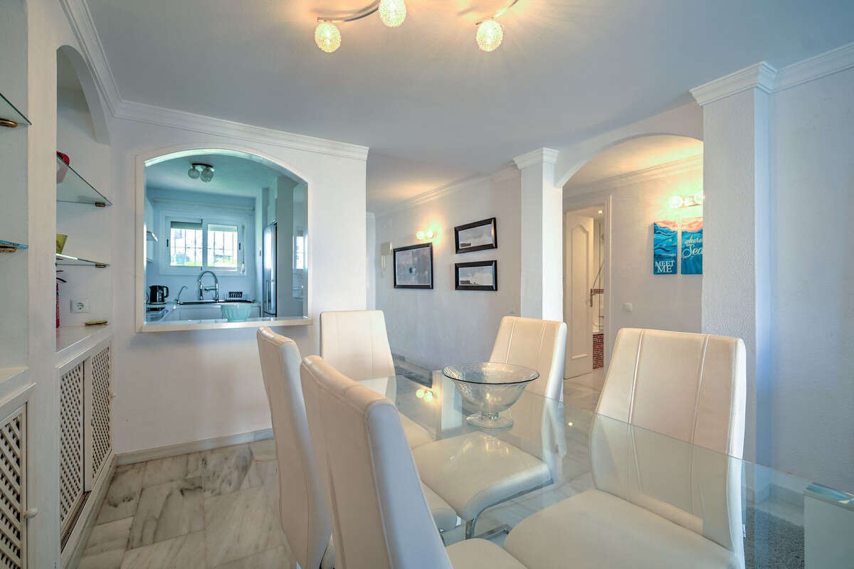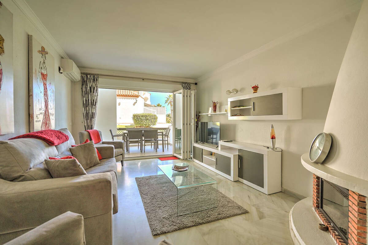 The highlight of this home is the large private terrace, perfect for dining, sunbathing, or relaxing outdoors. With direct access to the landscaped communal gardens and just steps from the beach, it's ideal for both holiday homes and year-round living. Additional features include marble floors, air conditioning, double glazing, and electric blinds for added comfort. This apartment is a rare find in one of Calahonda's most desirable beachfront communities.