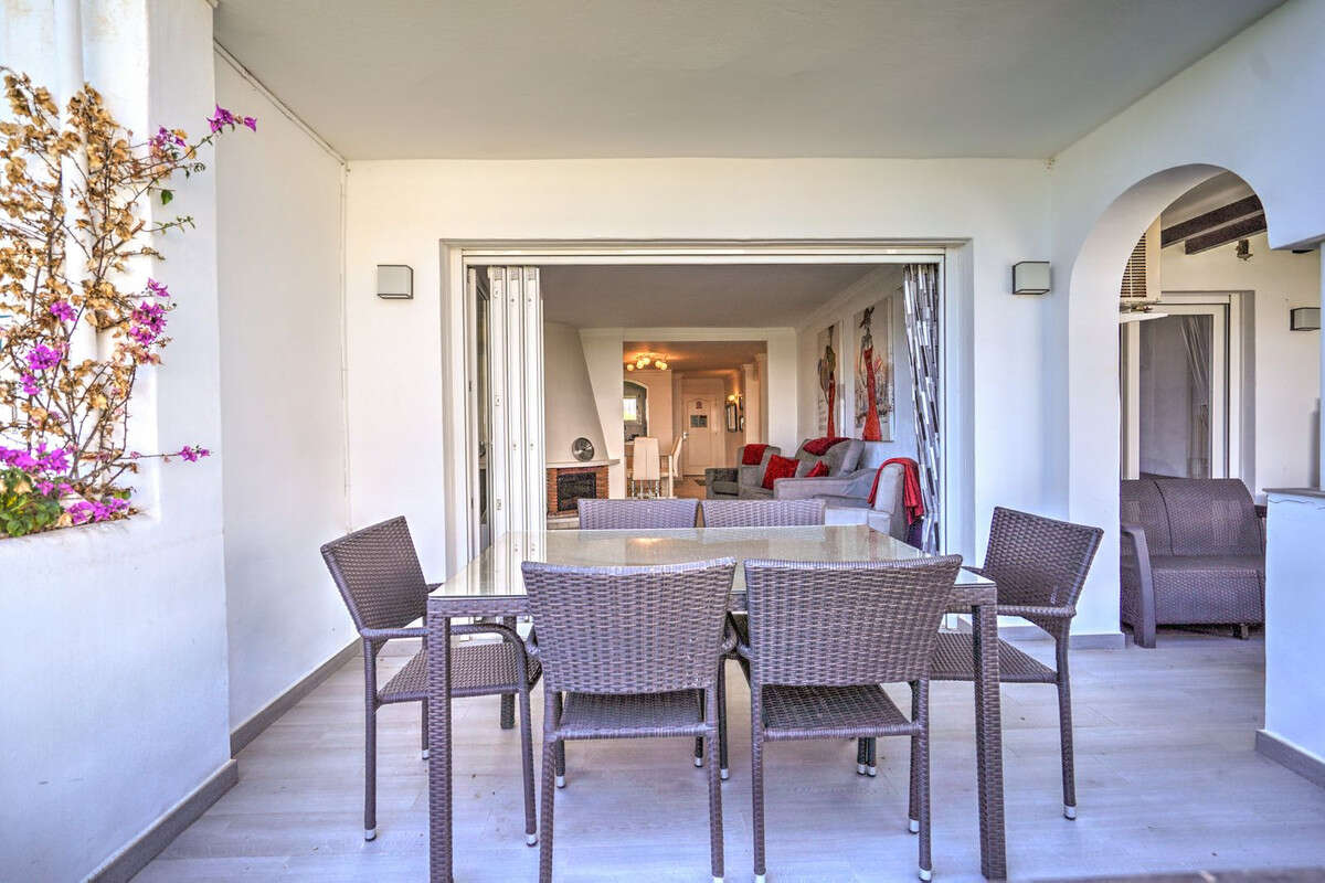 The highlight of this home is the large private terrace, perfect for dining, sunbathing, or relaxing outdoors. With direct access to the landscaped communal gardens and just steps from the beach, it's ideal for both holiday homes and year-round living. Additional features include marble floors, air conditioning, double glazing, and electric blinds for added comfort. This apartment is a rare find in one of Calahonda's most desirable beachfront communities.