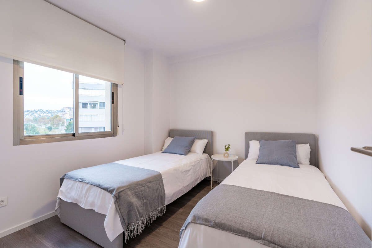 The base floor has its own kitchenette, and 2 more bedrooms each with their own bathroom. From the bedrooms you can access the shared terrace.