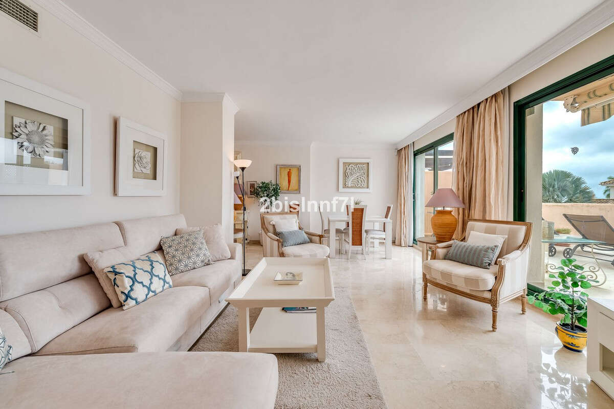 The apartment consists of two generously sized bedrooms and a third smaller one, ideal as a guest room, home office, or children's bedroom. Bedrooms benefits from lovely views of the landscape gardens. The two bathrooms have been renovated and feature underfloor heating for maximum comfort. The kitchen has also been completely renovated with high-end appliances and a modern design. One of the highlights of this property is its spectacular large terrace, with multiple areas to enjoy outdoor living. It features a covered dining space ideal for alfresco meals, a charming chill-out area and a sunbathing zone with longers, all offering beautiful views. Thanks to its excellent orientation, the apartment enjoys sunlight all day long, from 10 AM until sunset. From the terrace you can also enjoy a beautiful sea view on the horizon.
