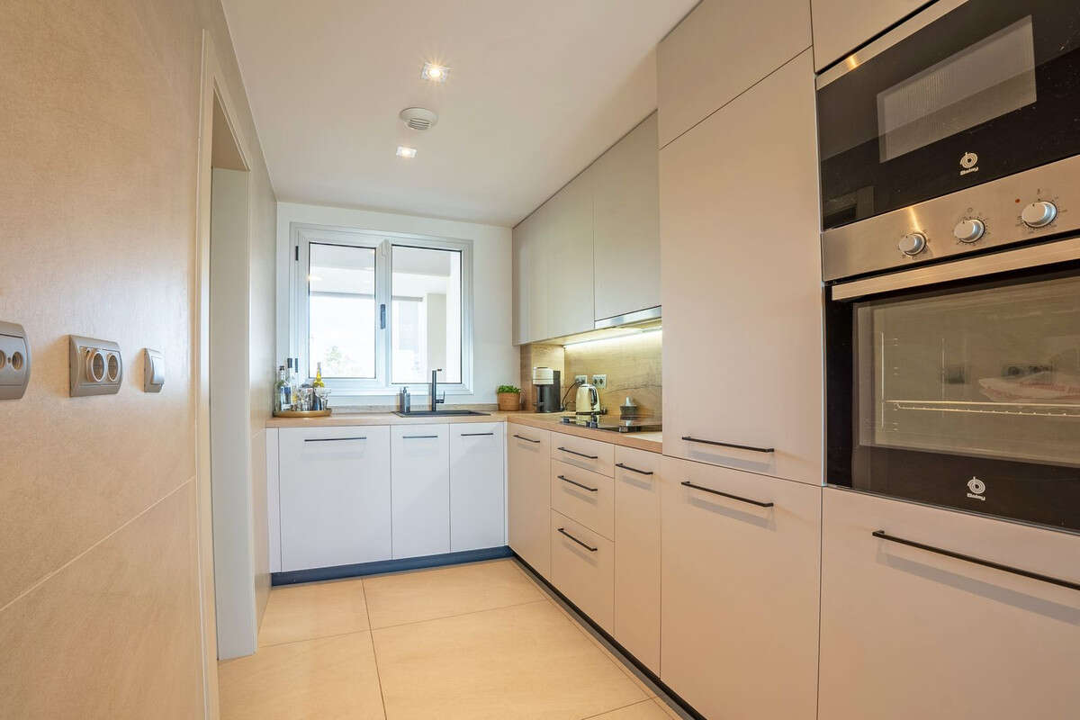 The spacious master suite boasts a luxurious en-suite bathroom and direct access to the south-facing terrace, allowing you to wake up to stunning views every day. The generously sized second bedroom also enjoys, floor-to-ceiling wardrobes with cleverly designed internal storage drawers, maximizing space and organization.