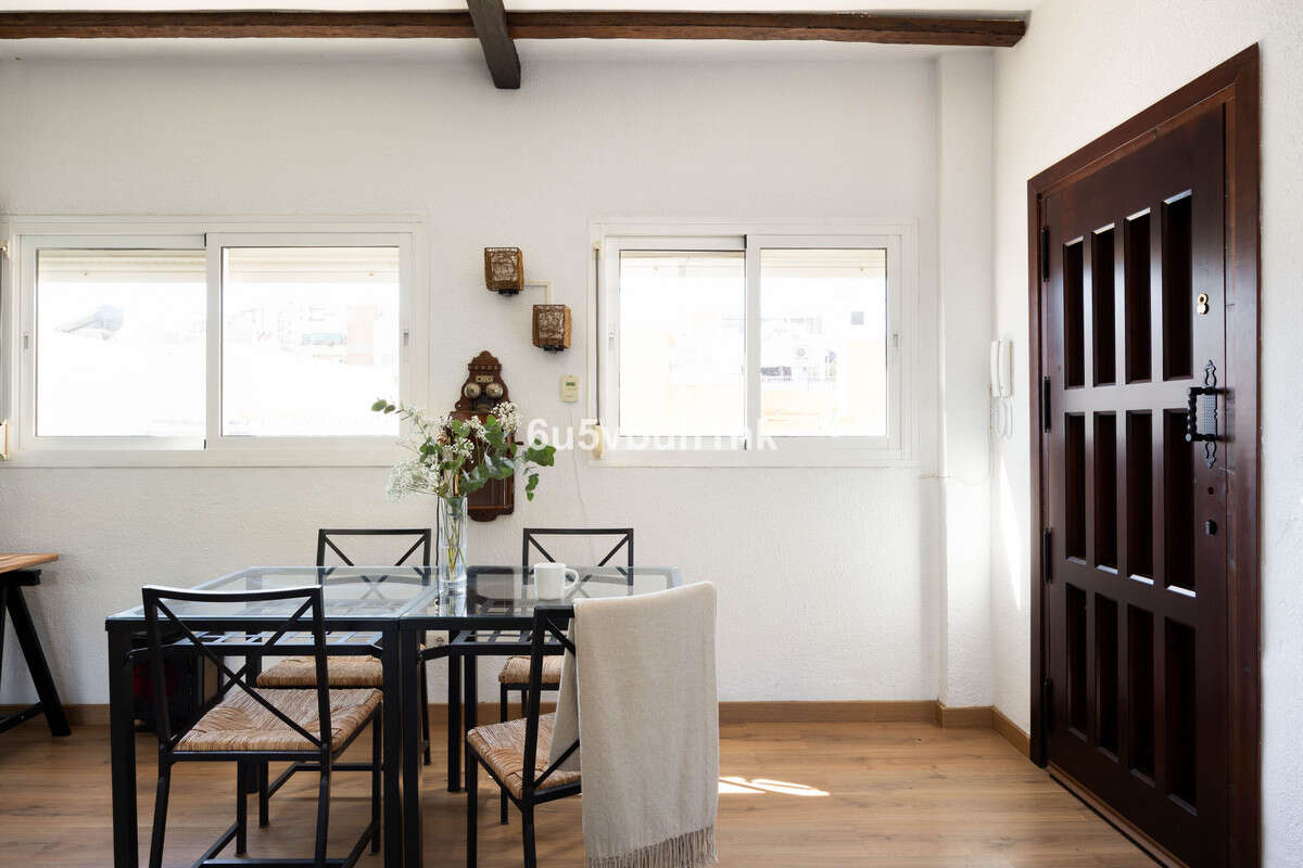 This charming apartment is situated on the third floor and offers a beautiful Andalusian touch with exposed wooden beams and high ceilings. The open-plan kitchen and living area create a bright and airy atmosphere with direct access to the sunny south-facing terrace — perfect for outdoor furniture, dining, and relaxation.