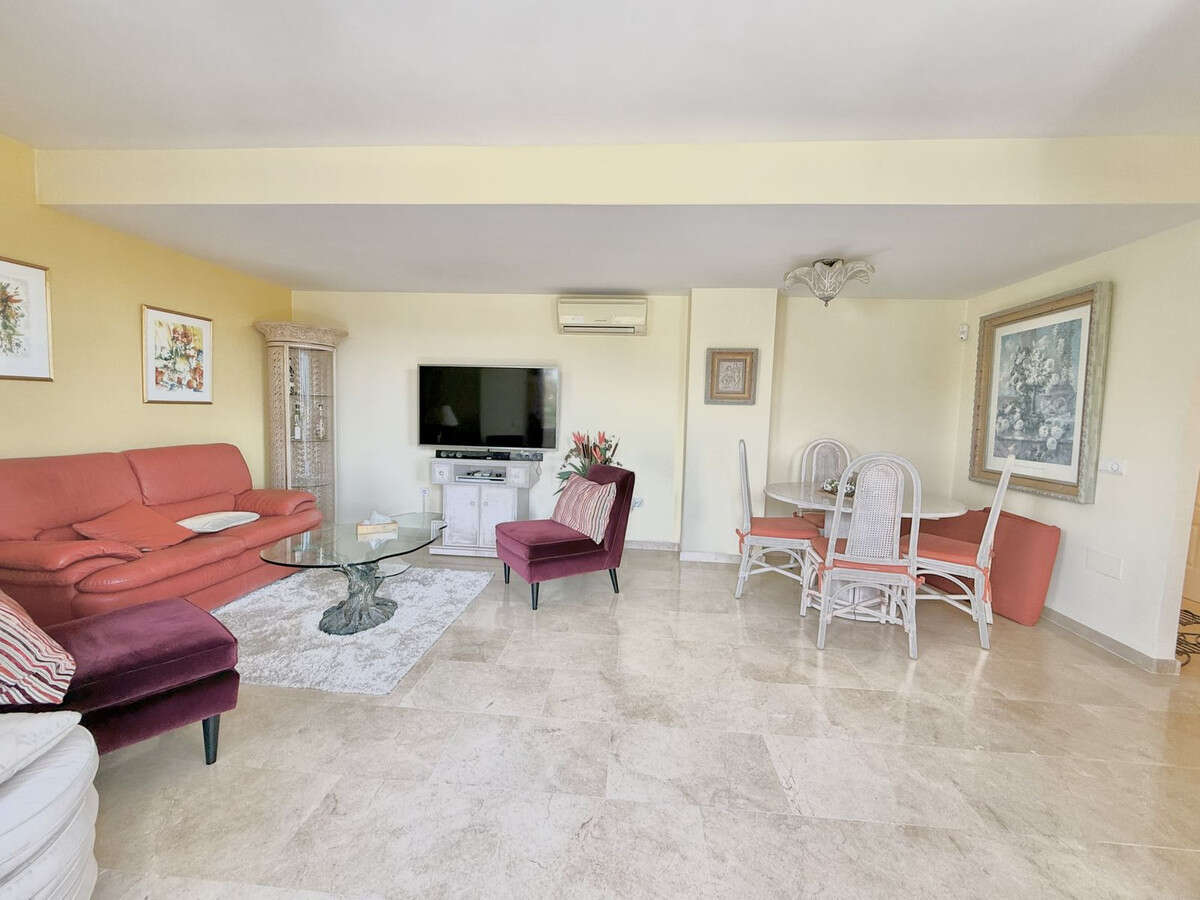 Upon entering, you are welcomed by a **spacious living and dining area**, ideal for relaxation or entertaining. To the left, a **separate kitchen** with large windows offers a picture-perfect view of the sea. From the **main terrace**, you can enjoy an **unobstructed view of Gibraltar and the Mediterranean**.