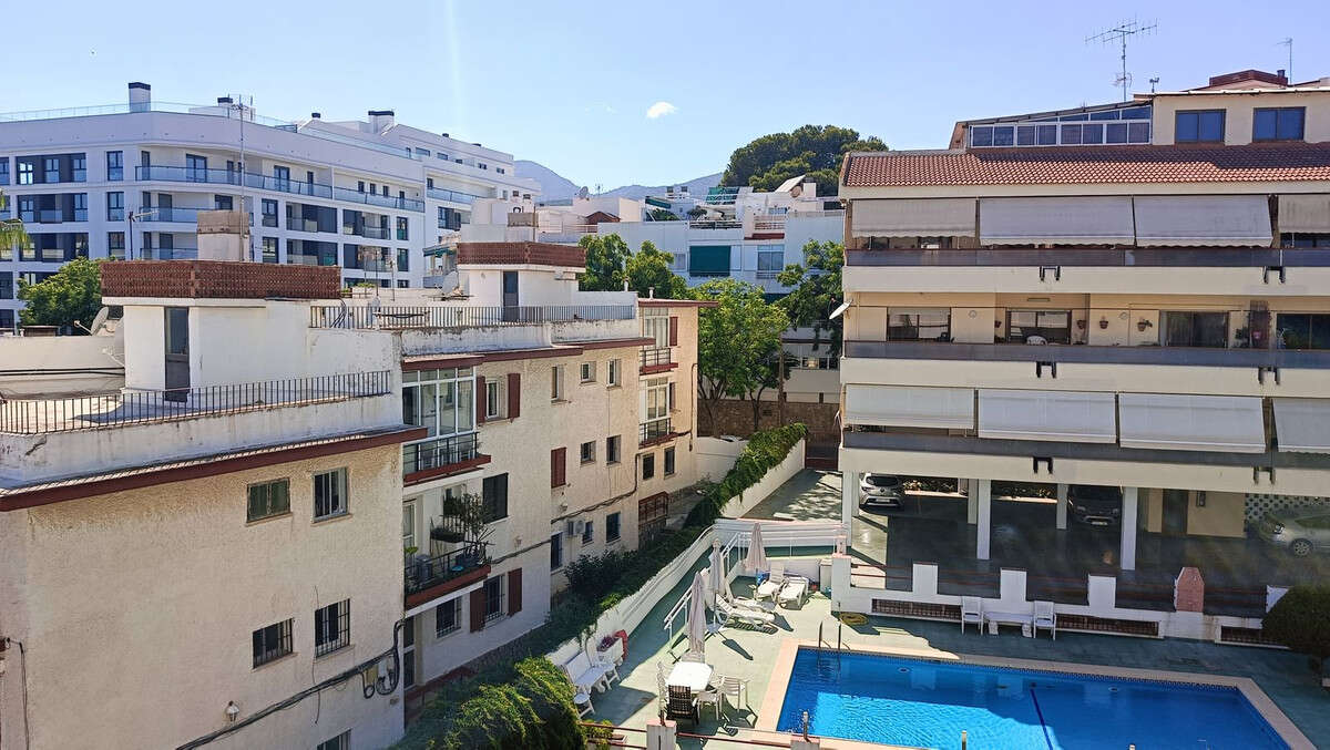 Magnificent 1 bedroom apartment with incredible sea views, very central close to everything, train stop, beach, shops, sunny all day, easy to rent all year round, has a large bedroom with sea views, very bright living room and separate kitchen, the building has an elevator and a communal pool and a private storage.