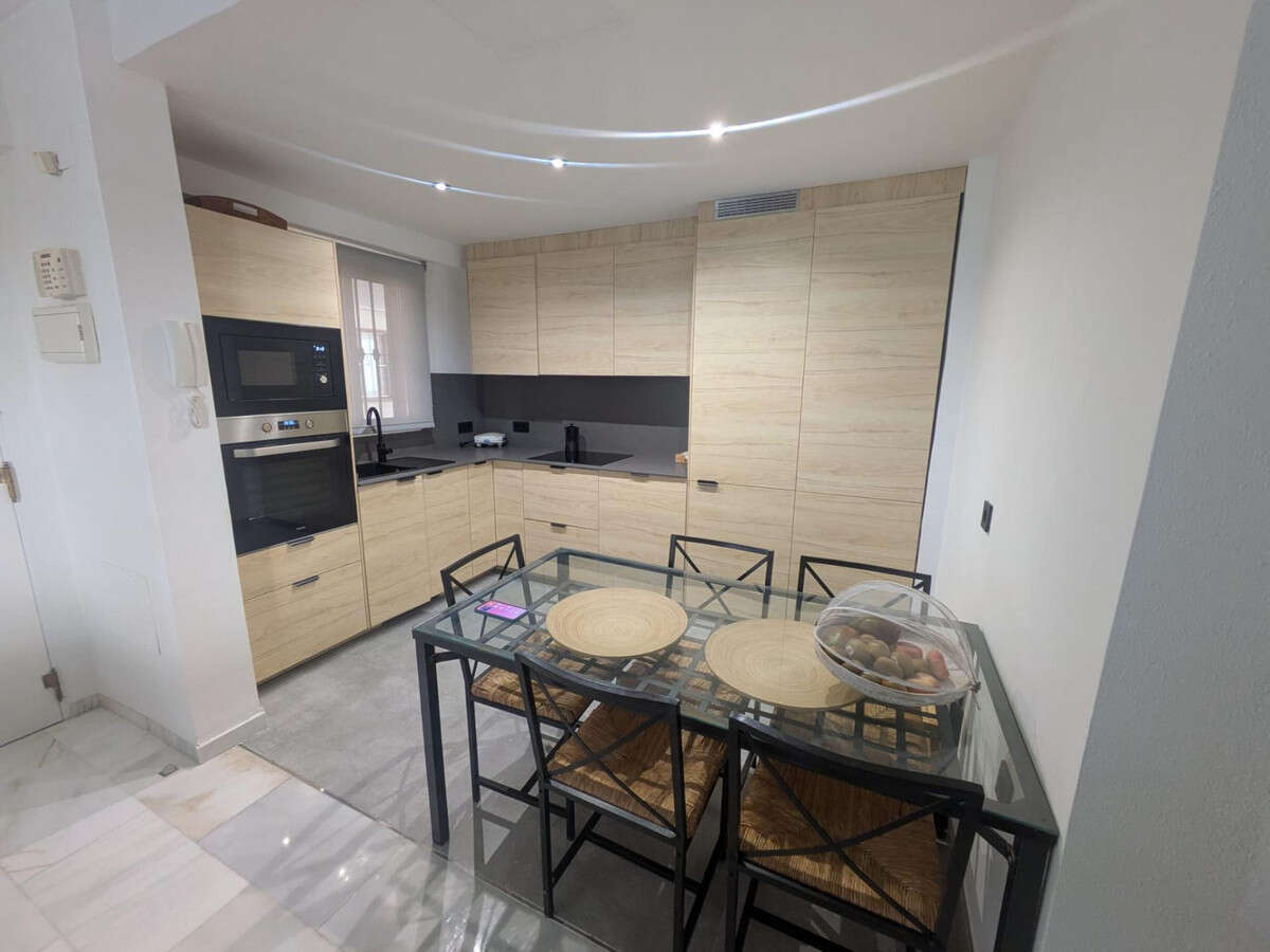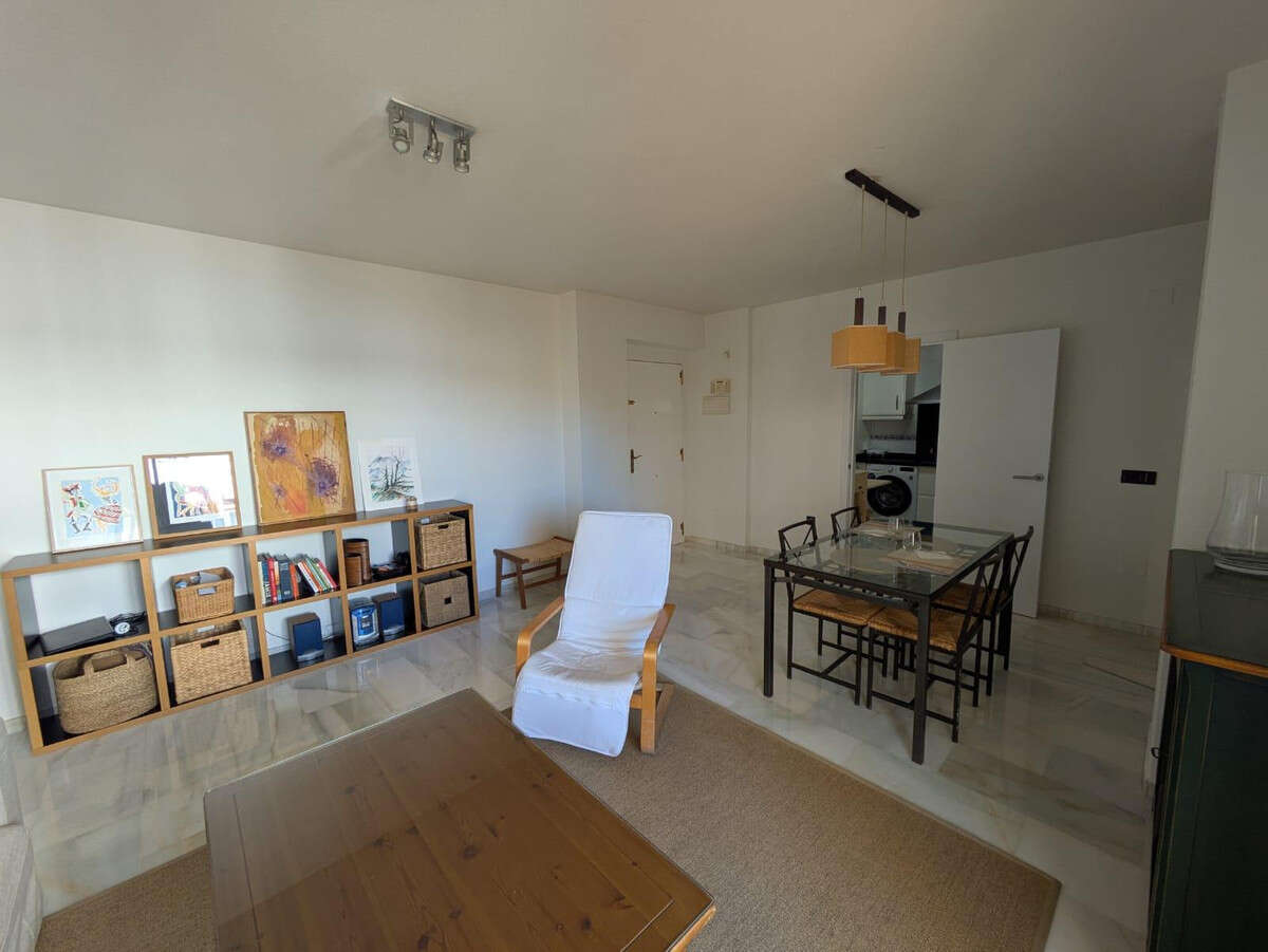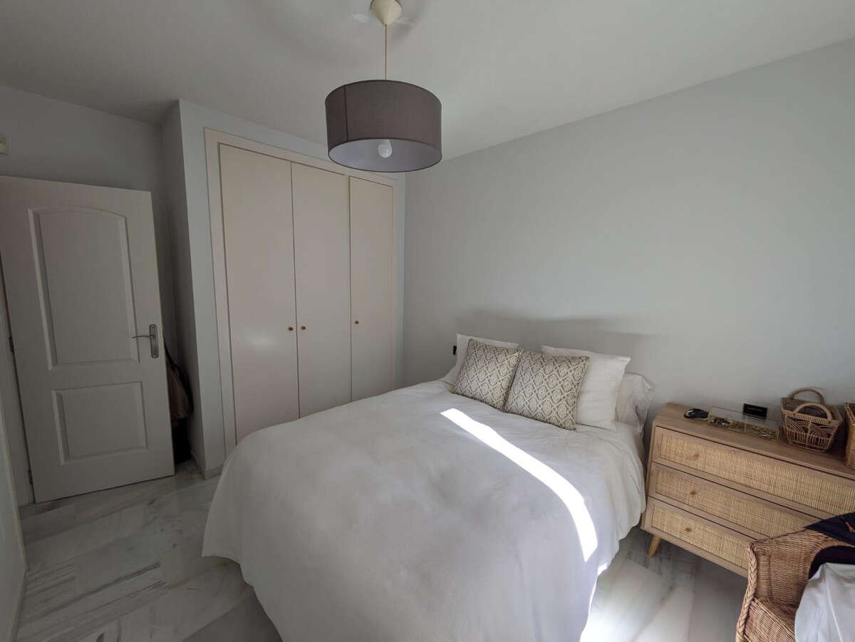 This charming first-floor apartment is located in one of the quietest and most sought-after areas of Torrequebrada, just 500 meters from the beach, allowing you to enjoy the Mediterranean coast in just a few minutes. The property features a spacious and bright living-dining room that connects to an additional room, ideal for use as an office or study. From the living room, you have access to a cozy balcony overlooking the complex's gardens and a small glimpse of the sea, where you can relax while enjoying a coffee. The balcony also offers internal views of the complex, providing an atmosphere of peace and privacy. The open-plan kitchen, newly installed in 2025, is fully equipped and offers a functional and practical space. The home also has two bathrooms, one with a bathtub, and two additional bedrooms, both with built-in wardrobes, offering ample storage space. The apartment includes a garage and storage room for added convenience. The complex also has a swimming pool, perfect for enjoying the good weather. The location is excellent, with all amenities nearby: a school, supermarkets, and a bus stop within walking distance, making everyday life easier. This home is ideal for those looking for a bright, quiet home with sea views and all the amenities, just a stone's throw from the beach and local amenities. If you'd like more information or to arrange a viewing, please don't hesitate to contact us.