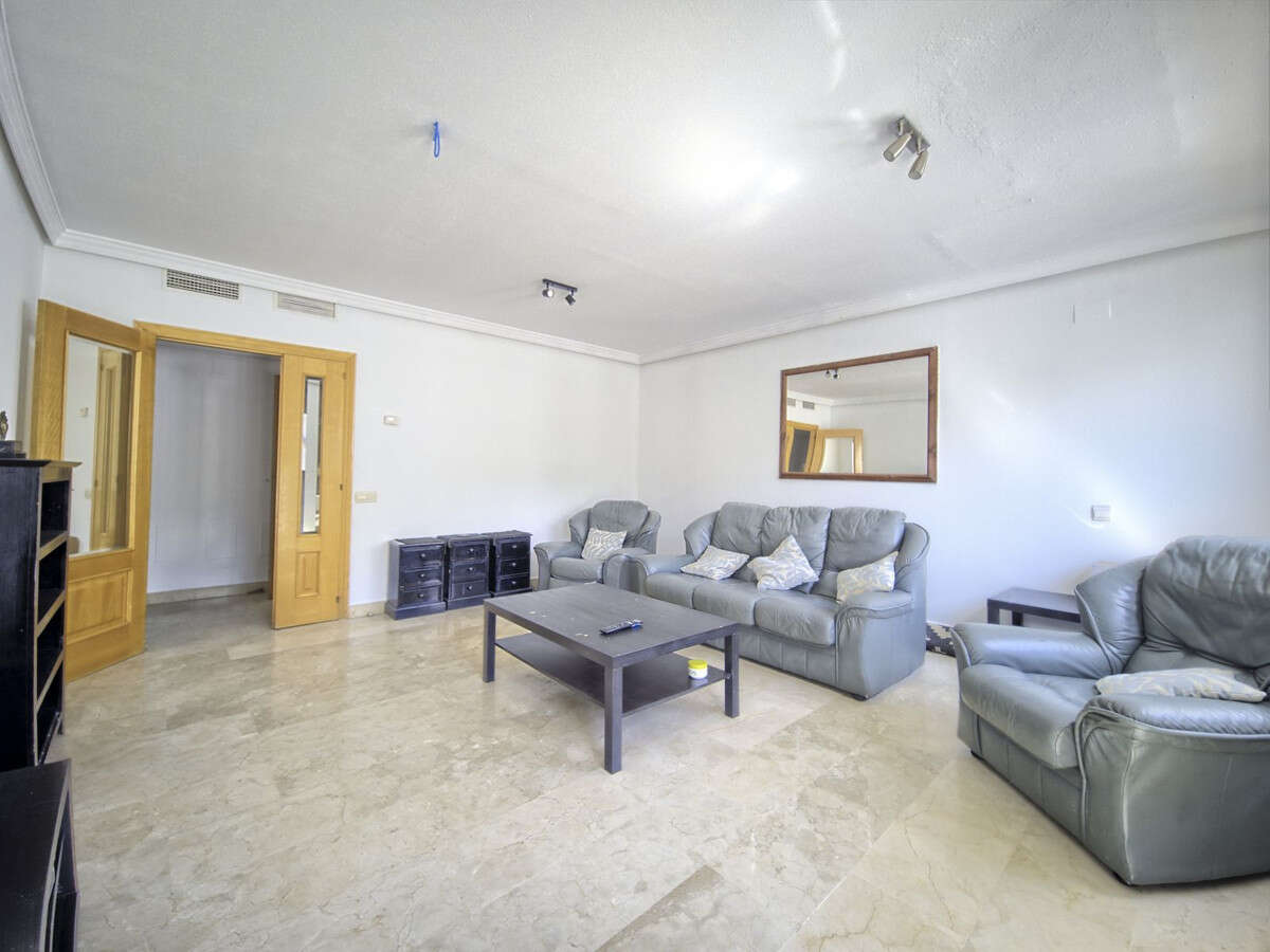 On the main level, the apartment features a large, airy living room that opens onto an expansive south-facing terrace—perfect for enjoying the sun or entertaining guests. There is a fully fitted kitchen with a separate utility room, a spacious master bedroom with an en-suite bathroom, and an additional guest bathroom.