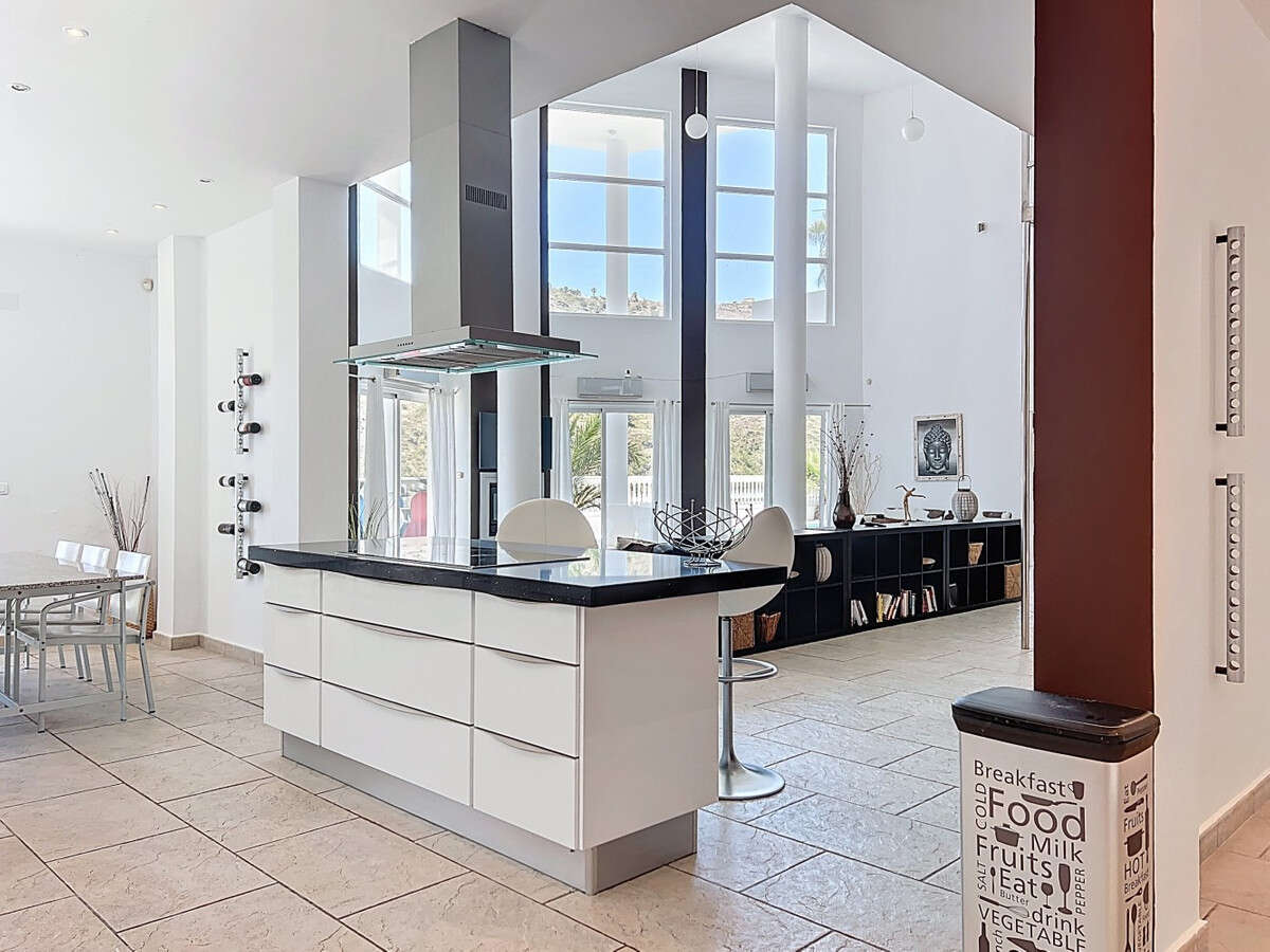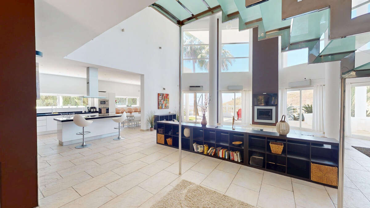 This impressive villa in Málaga, Spain, offers a harmonious blend of space, luxury, and modern design. Spanning 395.8 m2 across two floors, the property boasts 7 bedrooms and 5 bathrooms, making it ideal for large families or those who love to entertain. The ground floor, measuring 212.7 m2, features a stunning open-plan living area with soaring double-height ceilings. Floor-to-ceiling windows and sliding glass doors flood the space with natural light and provide seamless indoor-outdoor living. The living room is anchored by a sleek fireplace and complemented by comfortable, contemporary furnishings. The state-of-the-art kitchen is a chef's dream, featuring gleaming white cabinetry, high-end appliances, and a generous island with bar seating. Large windows offer picturesque views of the surrounding landscape while preparing meals. A unique feature of the ground floor is an indoor zen garden, complete with sand and decorative plants, adding a touch of tranquility to the space. The hallways are wide and well-lit, with carefully curated artwork adorning the walls. Ascending to the second floor via a modern staircase with glass balustrades, you'll find 183.0 m2 of additional living space. The primary bedroom, a spacious 26.9 m2, offers stunning views and an en-suite bathroom. The bathrooms throughout the property are sleek and modern, with large format tiles, walk-in showers, and contemporary fixtures. Some feature unique design elements like newspaper-print shower curtains, adding a playful touch to the otherwise minimalist aesthetic. Outside, the property benefits from its elevated position, offering panoramic views of the surrounding mountains and countryside, as well as the sparkling Mediterranean Sea. The outdoor area features a large swimming pool, perfect for relaxing or entertaining while enjoying the breathtaking scenery. The property offers easy access, ensuring a smooth connection to nearby amenities and attractions. Large terraces provide ample space for outdoor relaxation and entertainment, making this villa the ideal space for enjoying the Spanish climate in style. Throughout the villa, the color palette is predominantly white, creating a bright, airy atmosphere that's perfectly suited to the Spanish climate. Pops of color in furnishings and artwork add visual interest without overwhelming the serene ambiance. This villa represents the pinnacle of modern Spanish living, combining spacious interiors, high-end finishes, and breathtaking views in one impressive package a true dream home. We are pleased to be able to present this dream property to you soon, either personally or via virtual viewing. Because this world is unique - just like our Axarquía. In Andalusia. On the Costa del Sol. Here, on the sunny side of life...