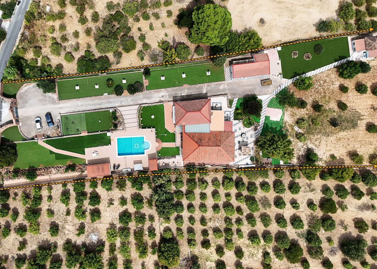 On the 4905m2 plot, which is fully fenced, there is a small 40m2 guest house, a 50m2 pool, a single-car garage with a large 55m2 workshop, and a small 14m2 bungalow.