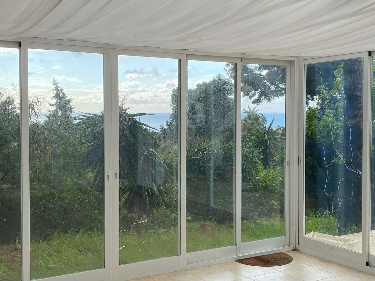 The property features a classic design with a spacious living room distributed on two levels and a separate kitchen. It currently has three bedrooms, all with en-suite bathrooms, and enough space to add a fourth bedroom after a renovation. Spacious terraces and a winter garden bring natural light and versatility to the living space, while the living room, with its cozy fireplace, is perfect for cooler evenings. The master bedroom is located upstairs and has a spacious bathroom and a private terrace. The entire house is equipped with air conditioning for added comfort.