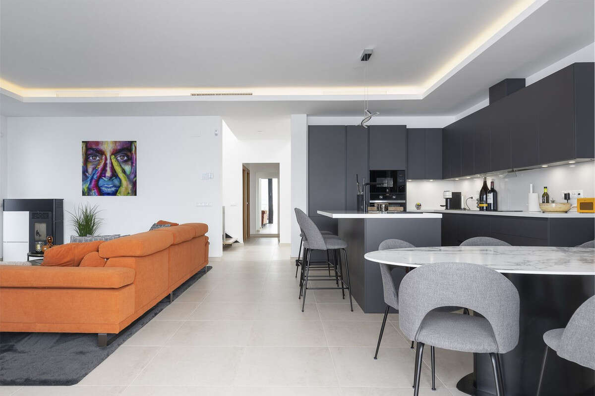 Open living space - A bright, open-plan living room with a sleek designer kitchen fitted with high-end appliances. Perfect for families and guests.