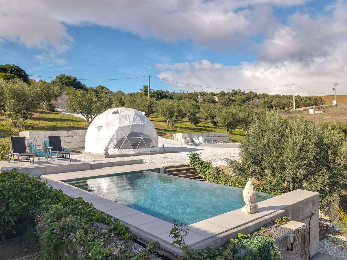 Beside the pool, there is currently a pod with a flat area available, offering potential for the addition of a second pod or separate accommodation.