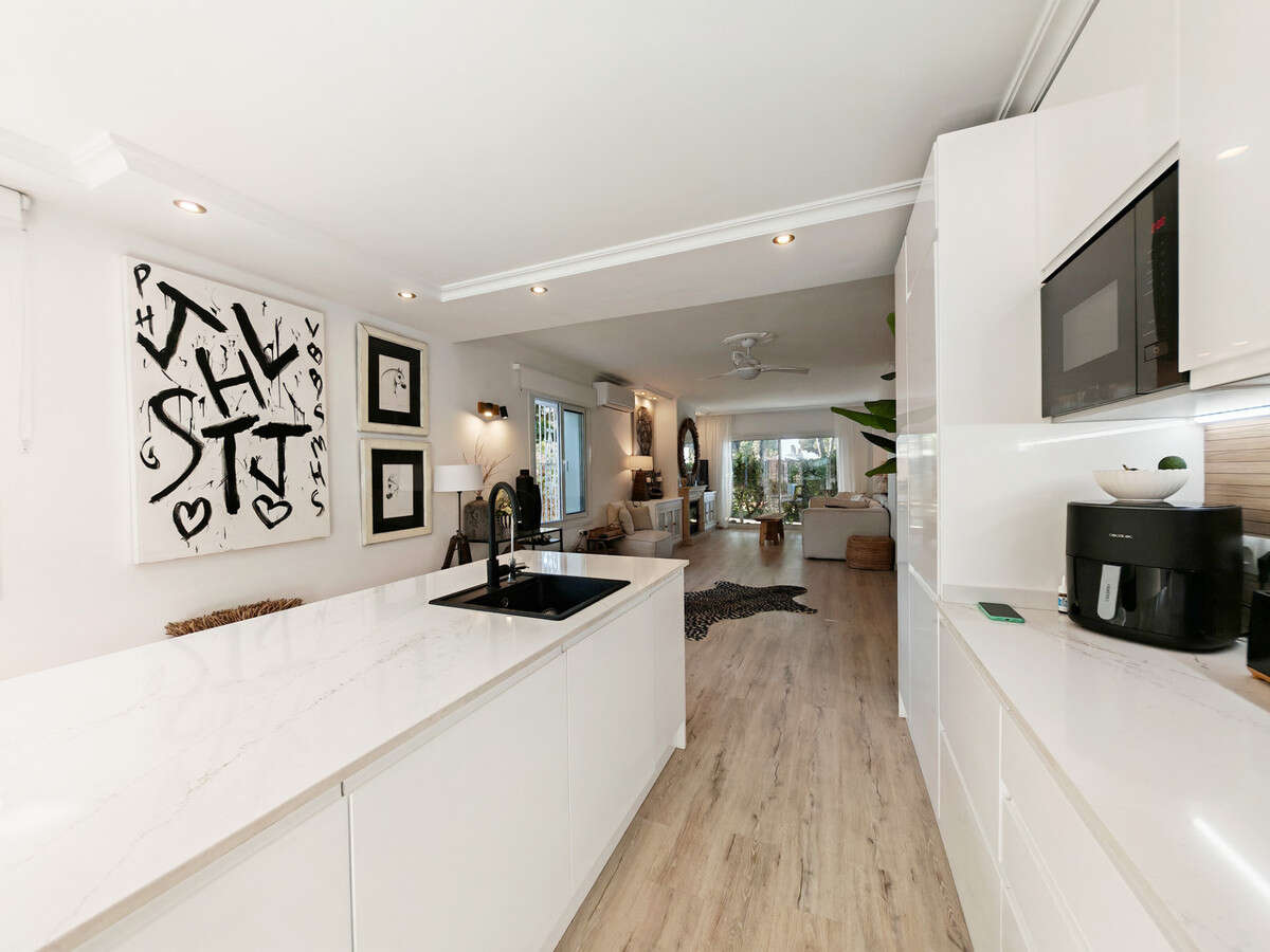 Villa for sale in Las Chapas, Marbella with 3 bedrooms, 2 bathrooms and 1 on suite bathroom, with communal swimming pool and private garden. Regarding property dimensions, it has 120 m² built and 400 m² plot. Has the following facilities amenities near, transport near, air conditioning, fully fitted kitchen, marble floors, alarm, security entrance, double glazing, dining room, barbecue, private terrace, kitchen equipped, living room, automatic irrigation system, security shutters, bars, laundry room, internet - wi-fi, covered terrace, electric blinds, fitted wardrobes, gated community, garden view, pool view, close to children playground, close to sea / beach, close to golf, glass doors, open plan kitchen, optional furniture, excellent condition, ceiling cooling system, close to shops and close to schools.