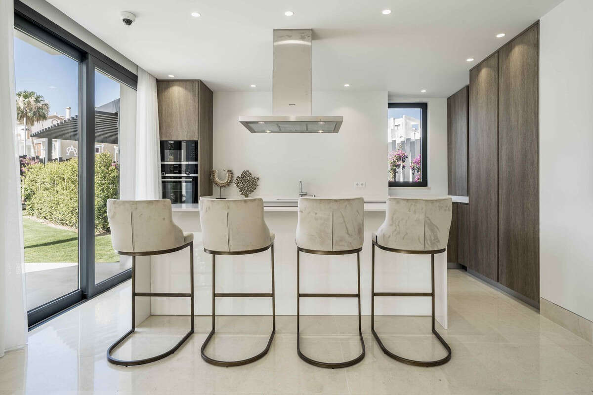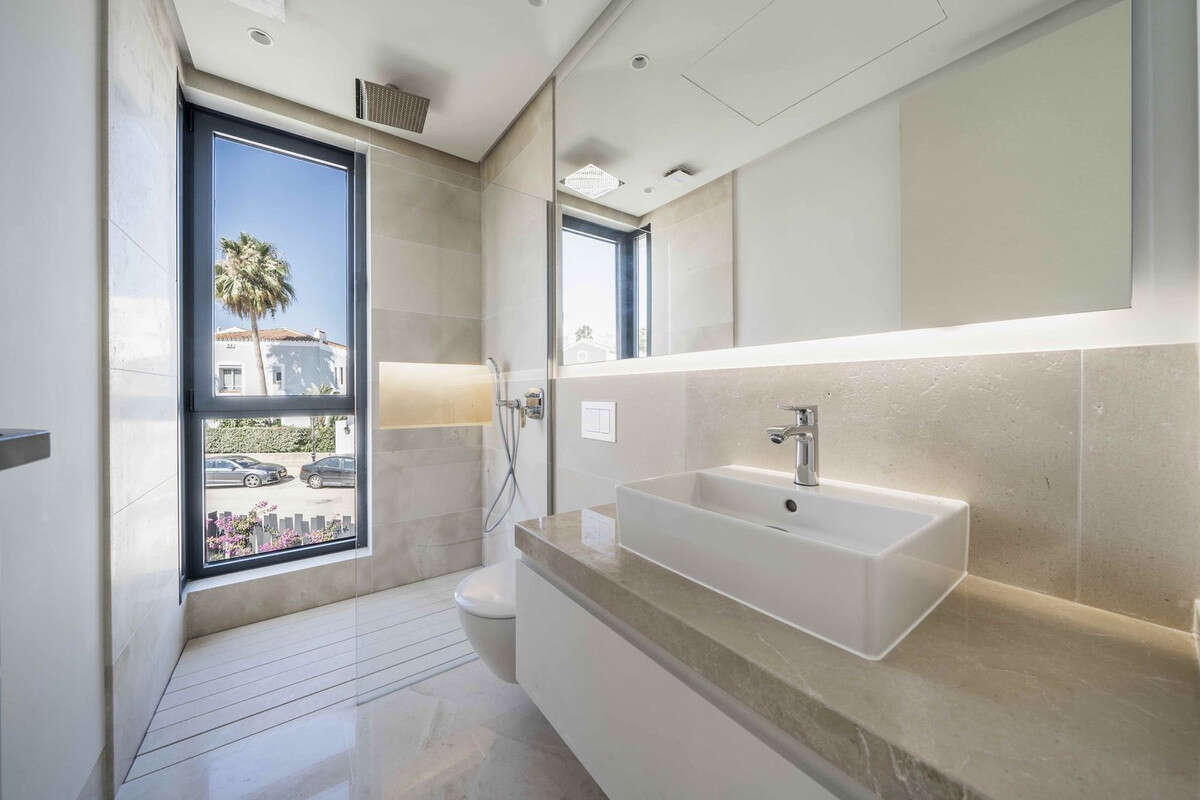 The villa is located in the renowned and tranquil district of El Campanario Golf, nestled between Marbella and Estepona, along the New Golden Mile. The property enjoys an excellent location, just one kilometer from the sunny beach and only a 10-minute drive from Puerto Banús. The area is characterized by luxurious villas and apartments, all surrounded by lush greenery.
