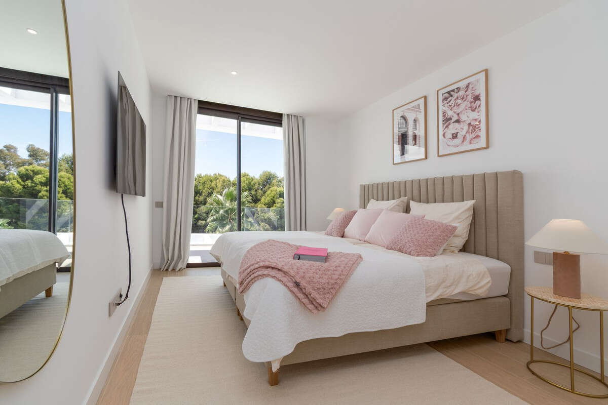 The villa features four comfortable bedrooms, all equipped with custom-built wardrobes and individual climate control. Three modern bathrooms, as well as a guest toilet, highlight the high level of functionality and design.