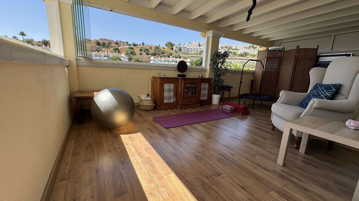 This wonderful family home is coming on the market for first time since it was built in 2007. Set in a quiet corner of Calahonda, the house comprises: On entrance level, a covered car port and entrance terrace, a hallway leading to a large living dining room, a covered terrace with glass curtains (which makes an extra room), a fully fitted kitchen with separate utility and a guest cloakroom. Up one level is a large open terrace with another glassed in terrace which could be put to a variety of uses. From this level there are lovely sea and countryside views. One floor down from the living areas are 3 double bedrooms, one of which is ensuite. But it's down at the ground floor level where this property really shines. There is a huge terraced area with private pool, and an enormous second living area with super high ceilings, not to mention a built in teppanyaki grill! Off this rom is another kitchen/utility room, but it's the outside space which really needs to be seen to be appreciated. A really super home, or equally a super buy to holiday let investment - this house is not in a community so can be holiday rented for ever if you wish...