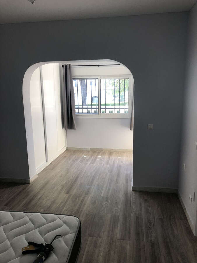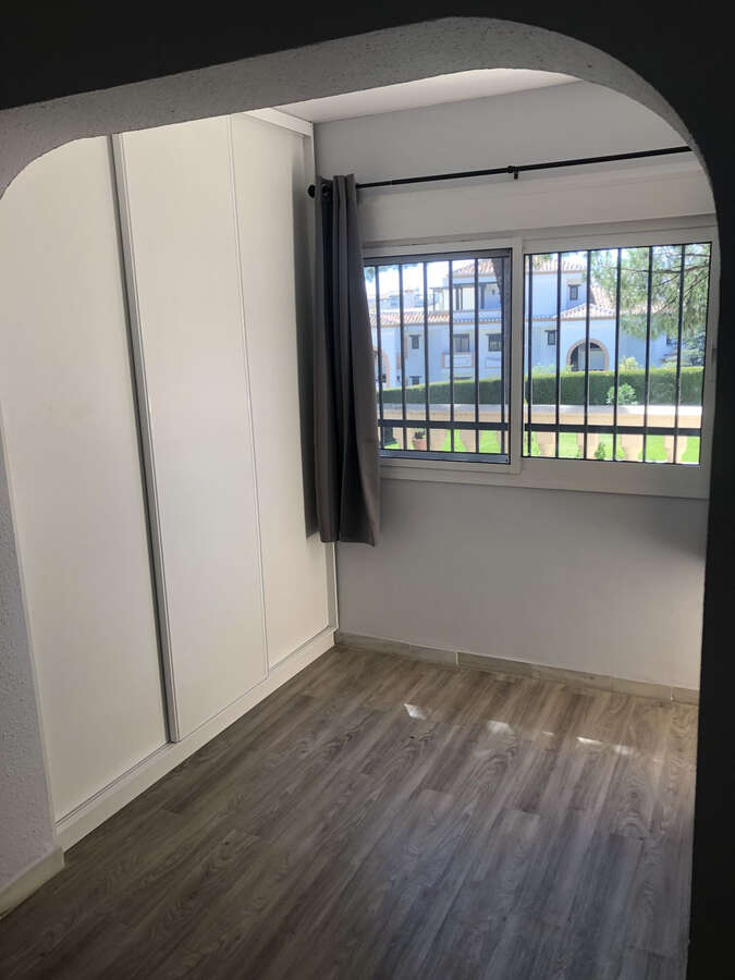 Semi Detached house lower Calahonda. In a small community of 15 houses with communal pool and garden. On the lower level there is a good size lounge, large fitted kitchen, a small bathroom and access to the private terrace and garden that wraps around three sides of the property. Upper level has large master bedroom with fitted wardrobes, private terrace and ensuite bathroom, also access to the roof terrace. You will also find two other bedrooms and a large bathroom. The property does need some renovations to bring it up to its full potential but would make a lovely family home or holiday home.