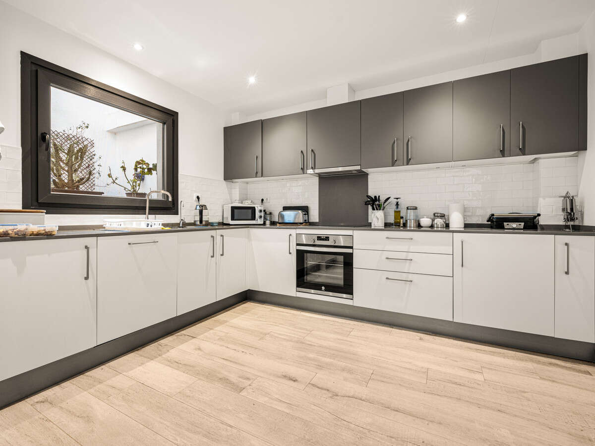 Three large sunny terraces create outdoor living on every level. The internal patio connects the house from top to bottom and brings in natural light. The master bedroom enjoys its own private terrace with open views to the coast and the mountains.