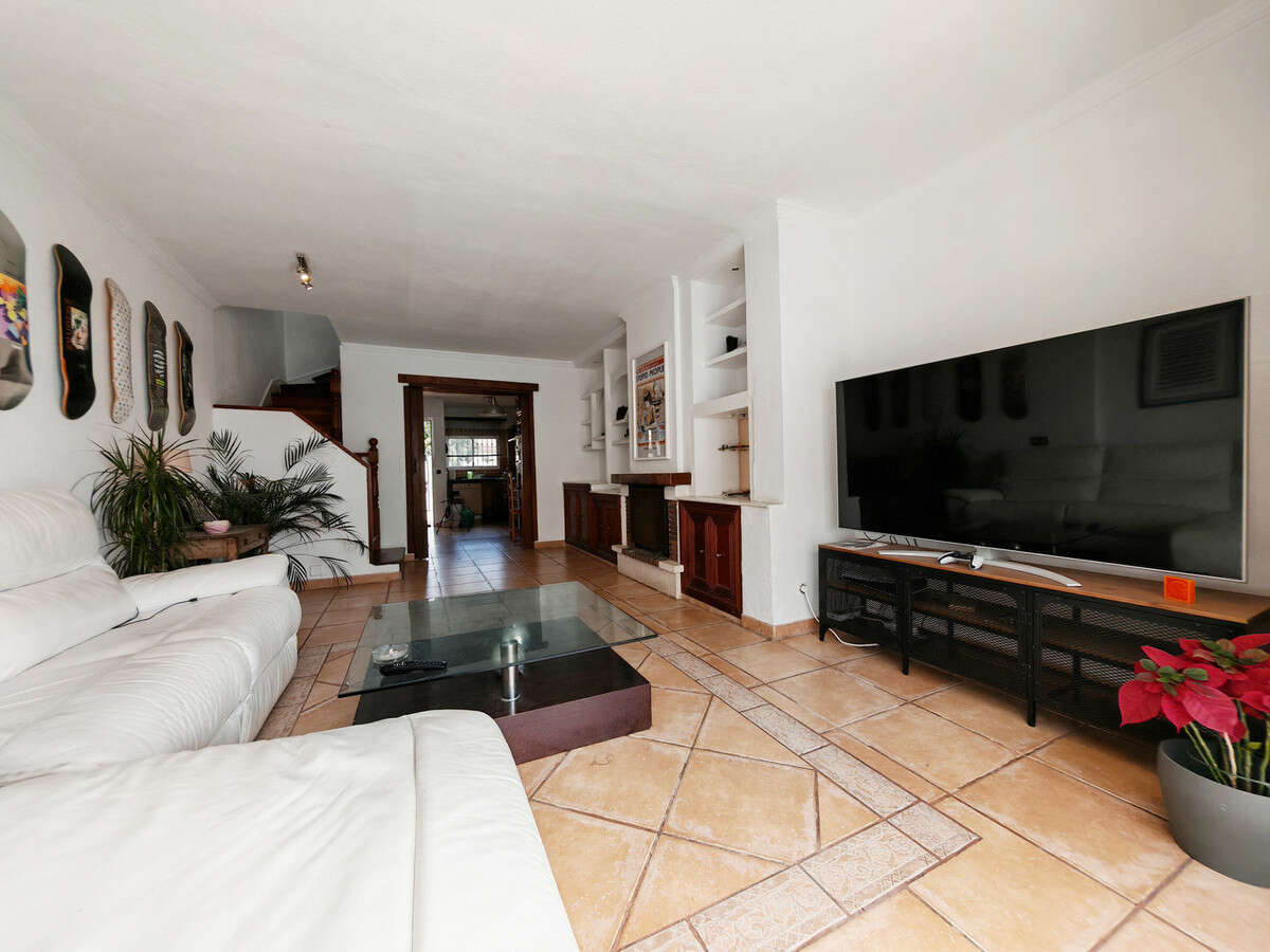 Semi Detached House for sale in , Mijas Costa with 3 bedrooms, 2 bathrooms, 1 toilet and with orientation south, with communal swimming pool and communal garden. Regarding property dimensions, it has 147 m² built, 104.4 m² plot, 74.4 m² interior and 73 m² terrace. Has the following facilities amenities near, transport near, air conditioning, fully fitted kitchen, fireplace, guest room, solarium, guest toilet, private terrace, sea view, bars, fitted wardrobes, gated community, garden view, pool view, tennis / paddle court, street view, close to children playground, close to sea / beach, close to golf, balcony, good condition, renovation needed, urban view, close to shops, close to schools, guest apartment, roof terrace and close to restaurants.