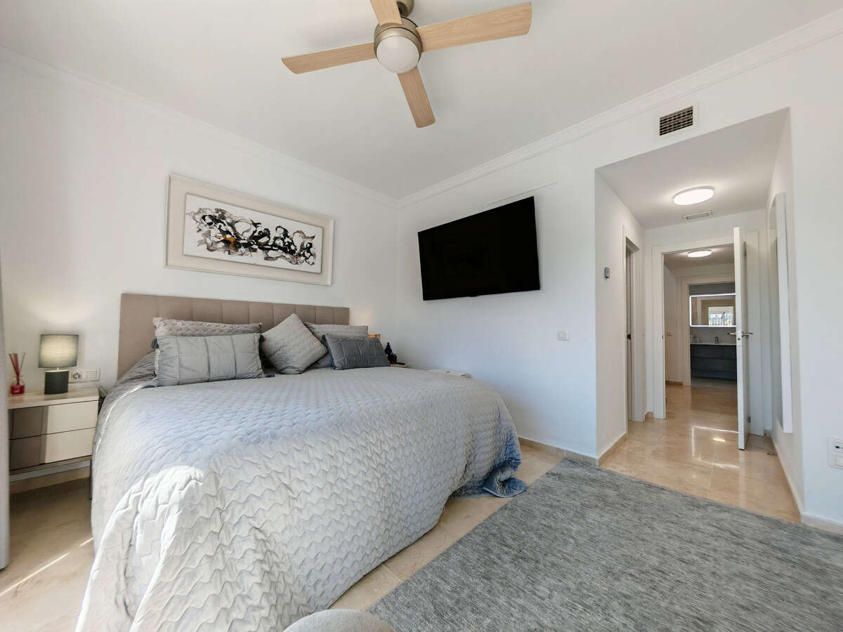 Town House for sale in , Mijas Costa with 4 bedrooms, 3 bathrooms, 1 toilet and with orientation south/east, with communal swimming pool, private garage (3 parking spaces) and private garden. Regarding property dimensions, it has 175 m² built and 70 m² terrace. Has the following facilities front line golf, air conditioning, fully furnished, fully fitted kitchen, utility room, marble floors, basement, storage room, alarm, solarium, security entrance, double glazing, security service 24h, guest toilet, private terrace, living room, separate apartment, sea view, golf view, heated pool, automatic irrigation system, security shutters, smart home system, bars, laundry room, internet - wi-fi, covered terrace, fitted wardrobes, gated community, garden view, pool view, panoramic view, close to children playground, close to sea / beach, close to golf, uncovered terrace, glass doors, balcony, wheelchair-accessible, recently renovated / refurbished, lake view, ceiling cooling system, ceiling heating system, close to shops, close to schools, guest apartment, inside golf resort, office room and pets allowed.